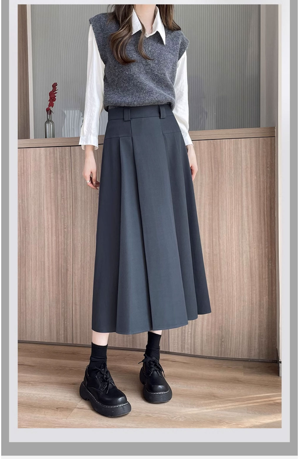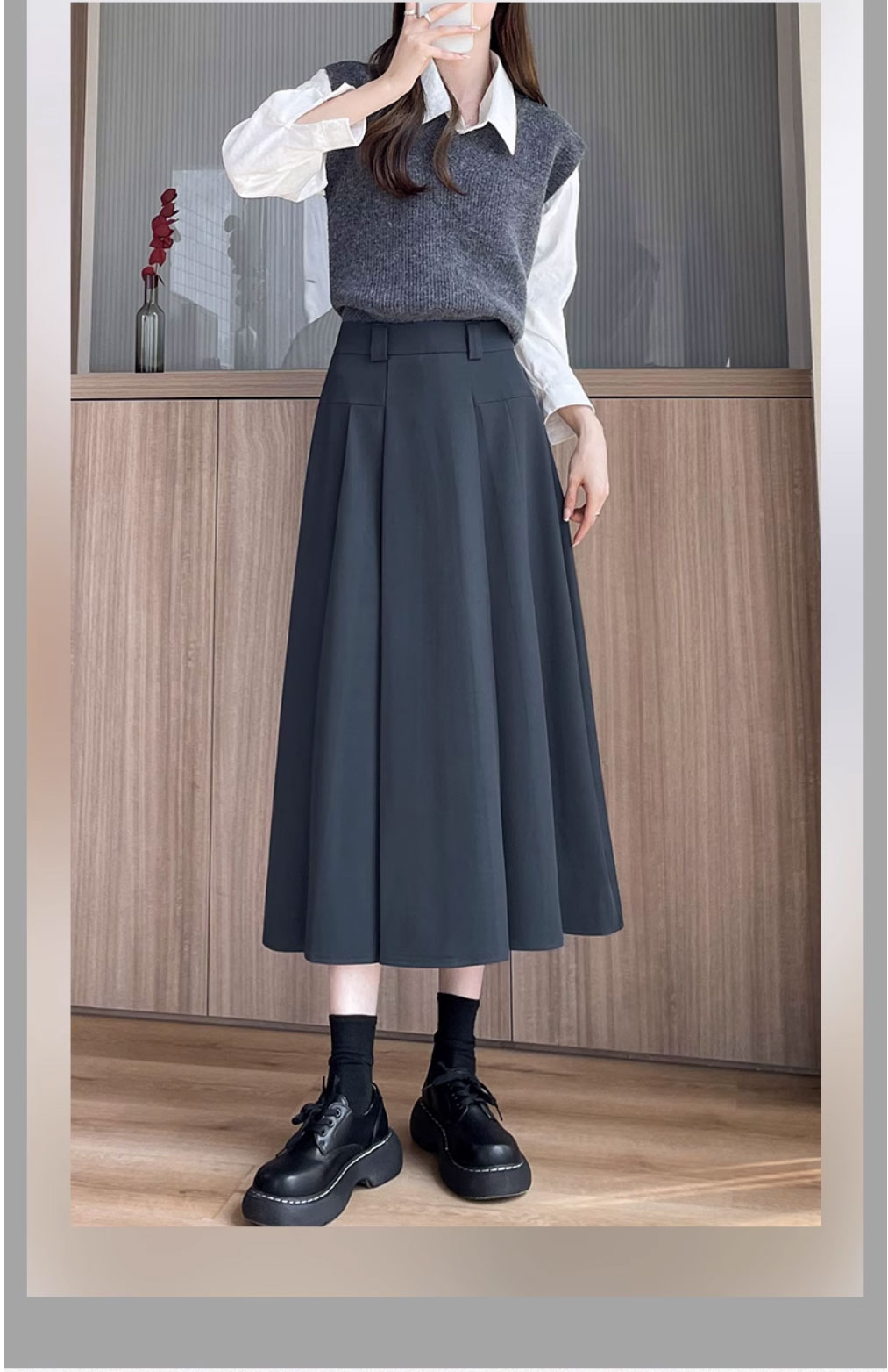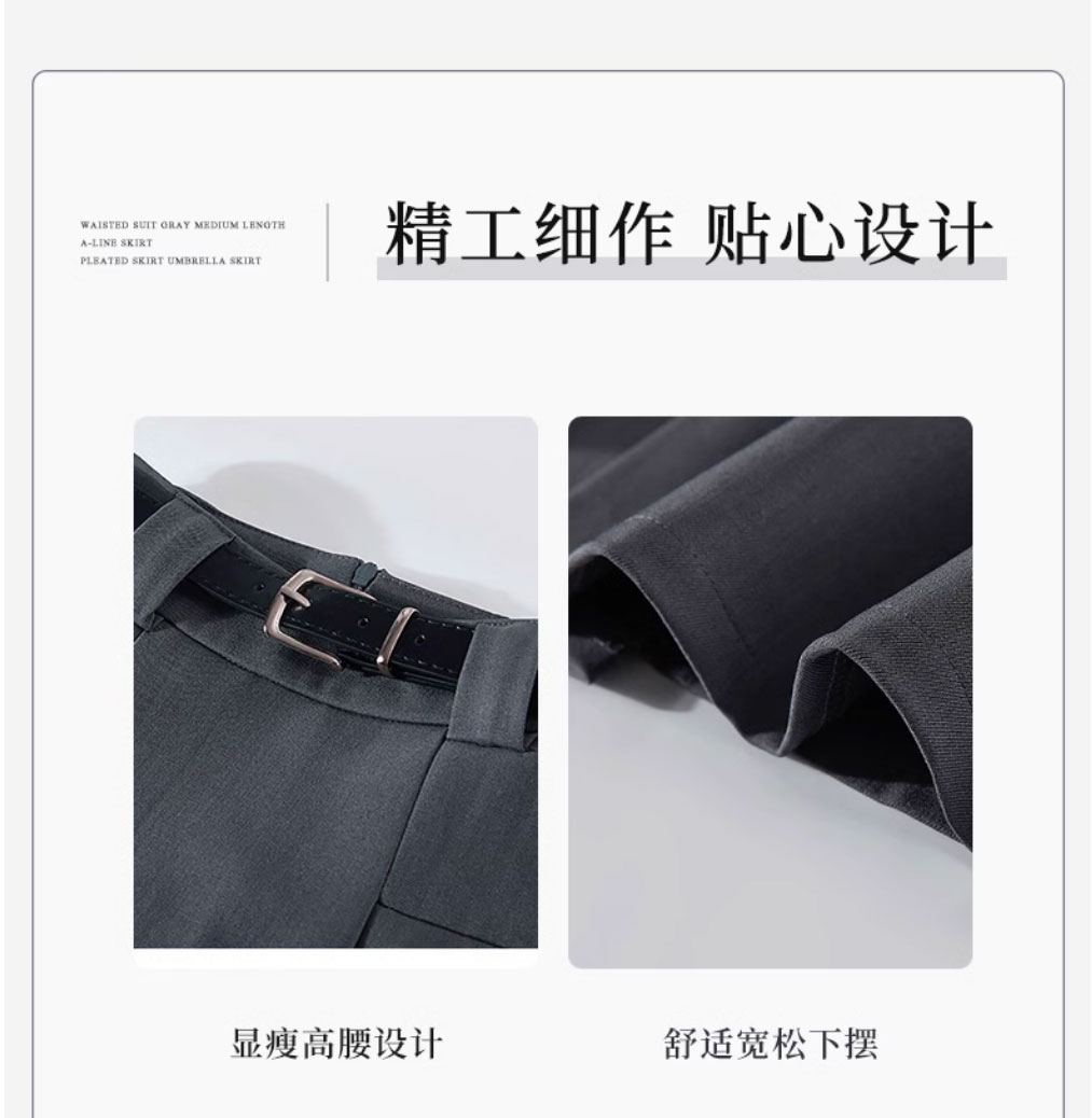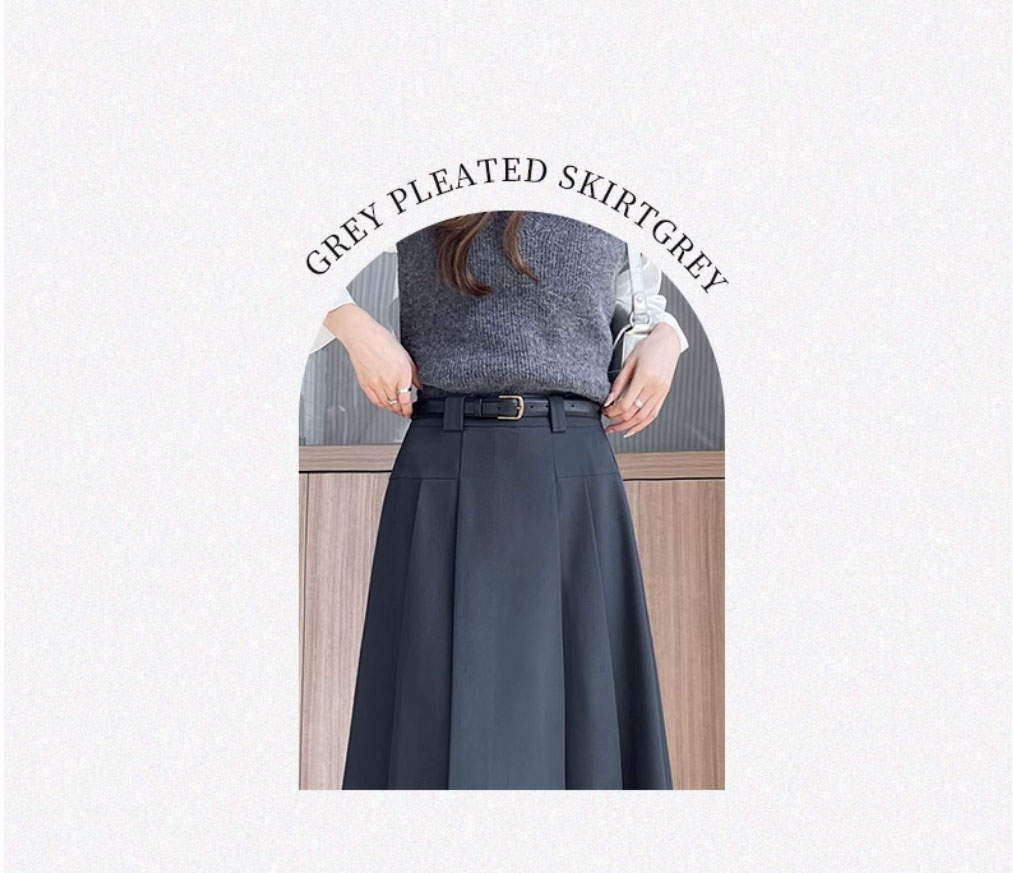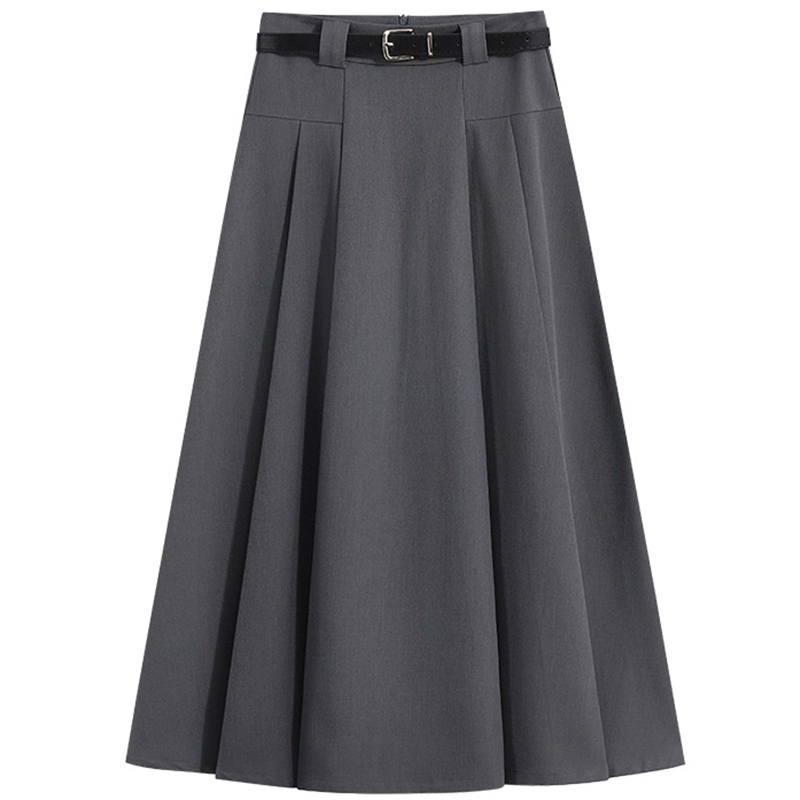 グレースーツスカート女性のための春と夏 2025 新しい韓国スタイルハイウエストスリム A ラインミドル丈プリーツスカート