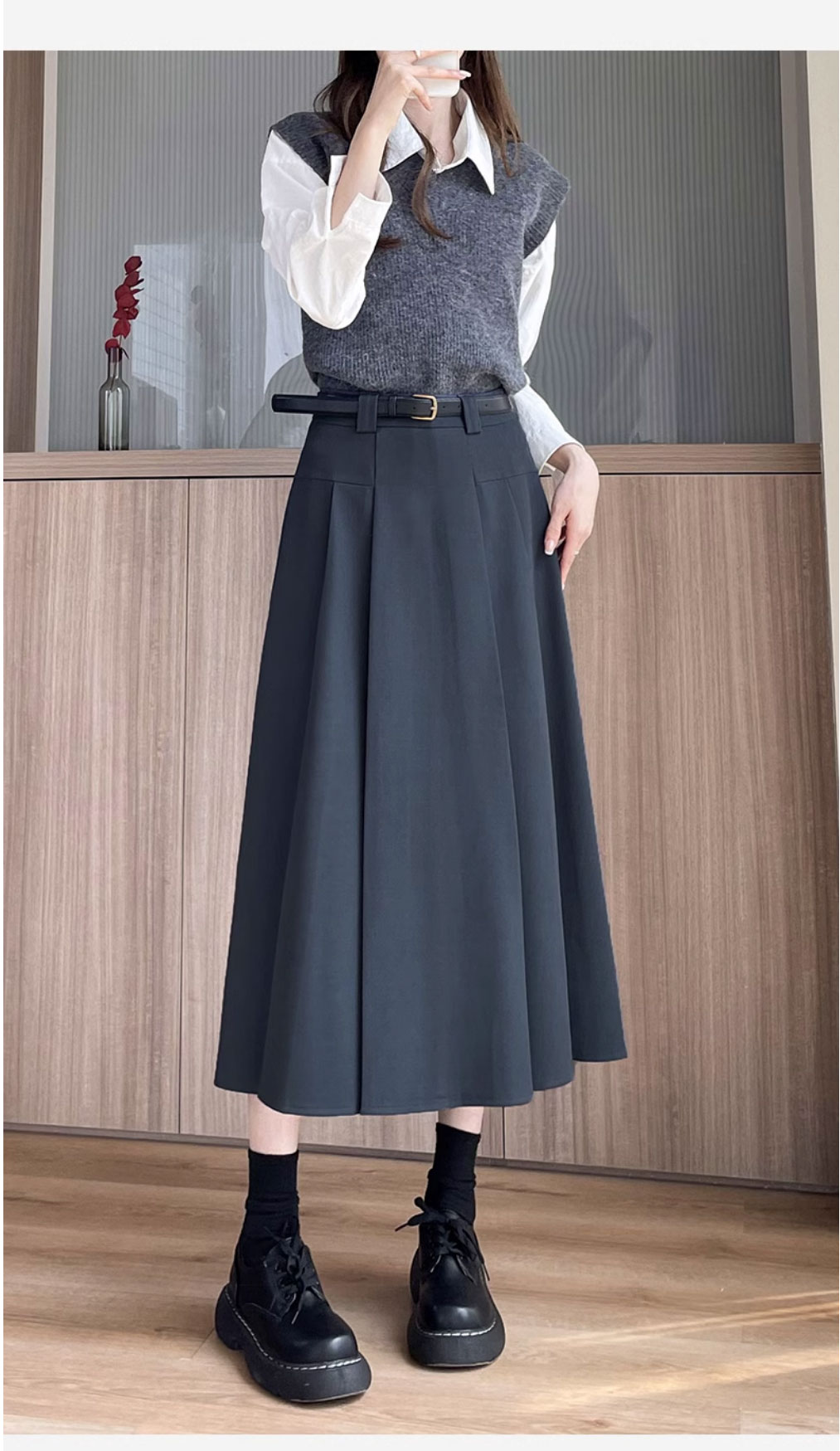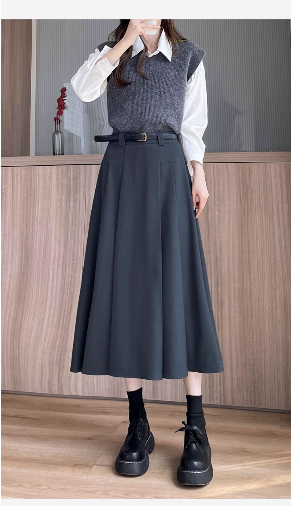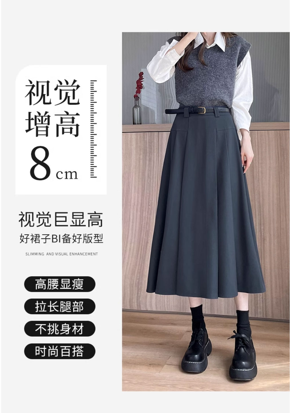 グレースーツスカート女性のための春と夏 2025 新しい韓国スタイルハイウエストスリム A ラインミドル丈プリーツスカート