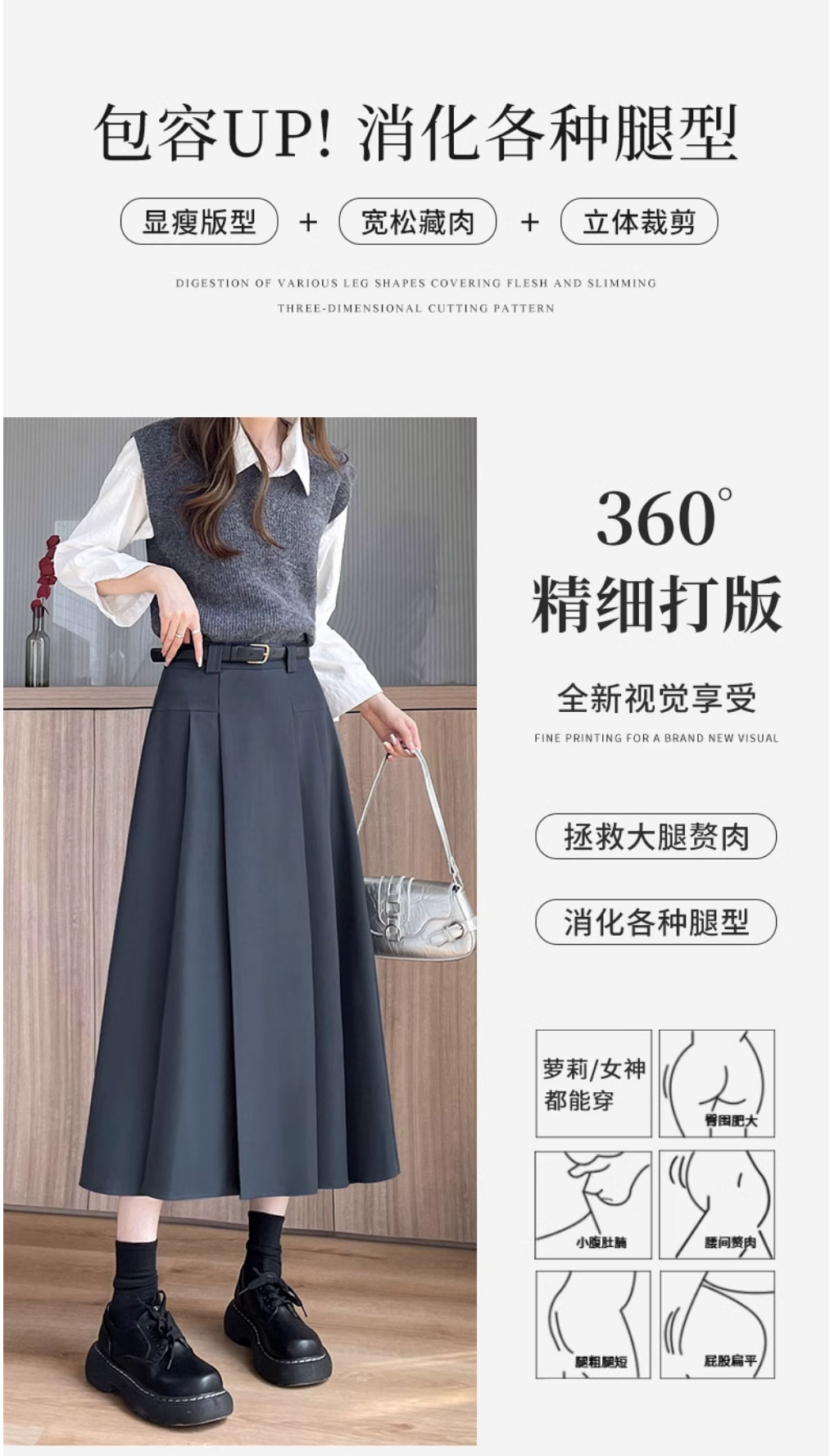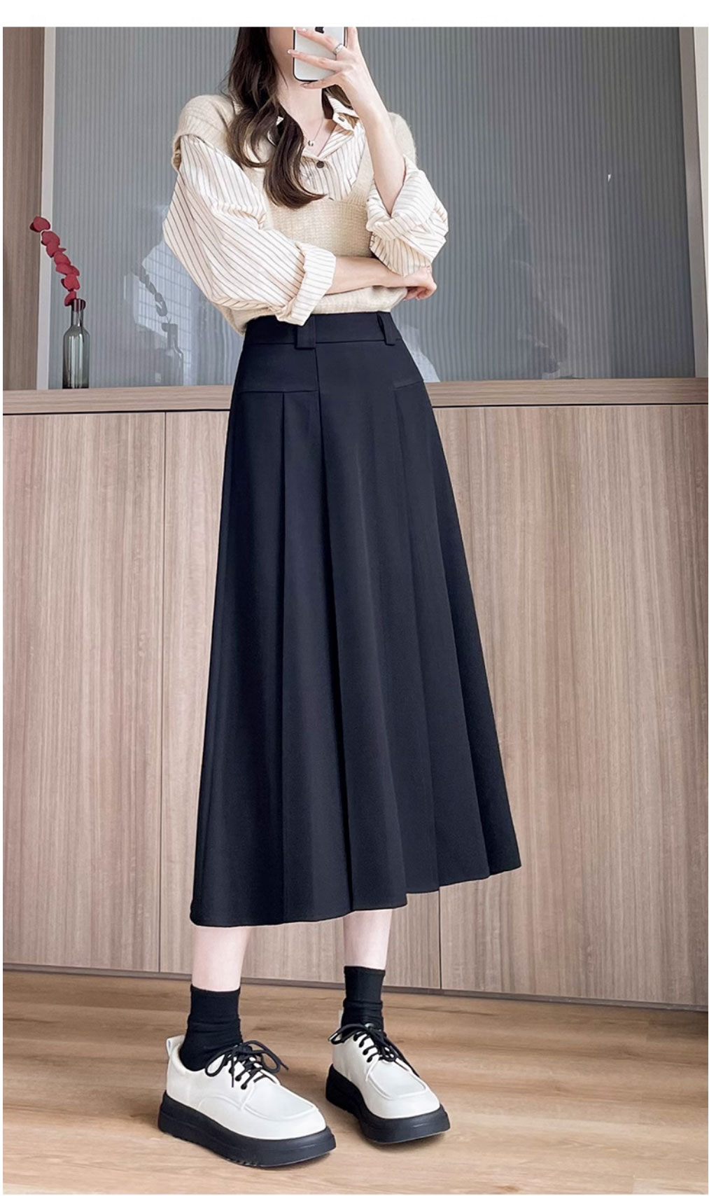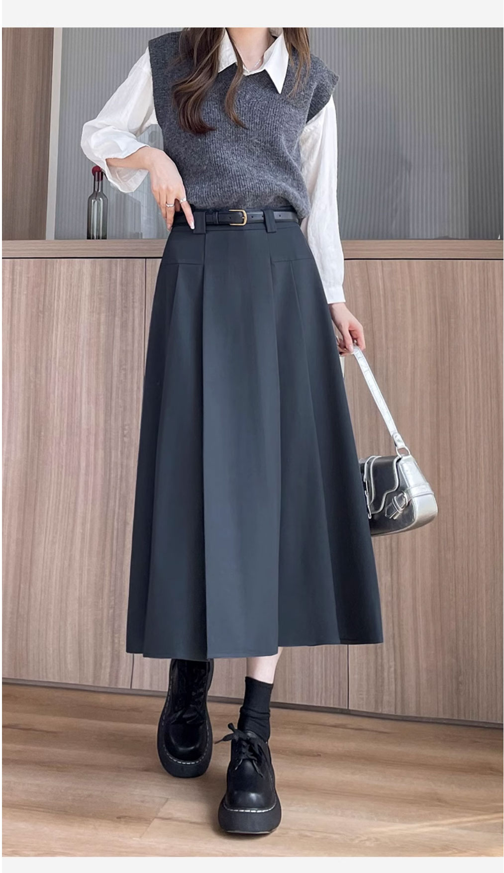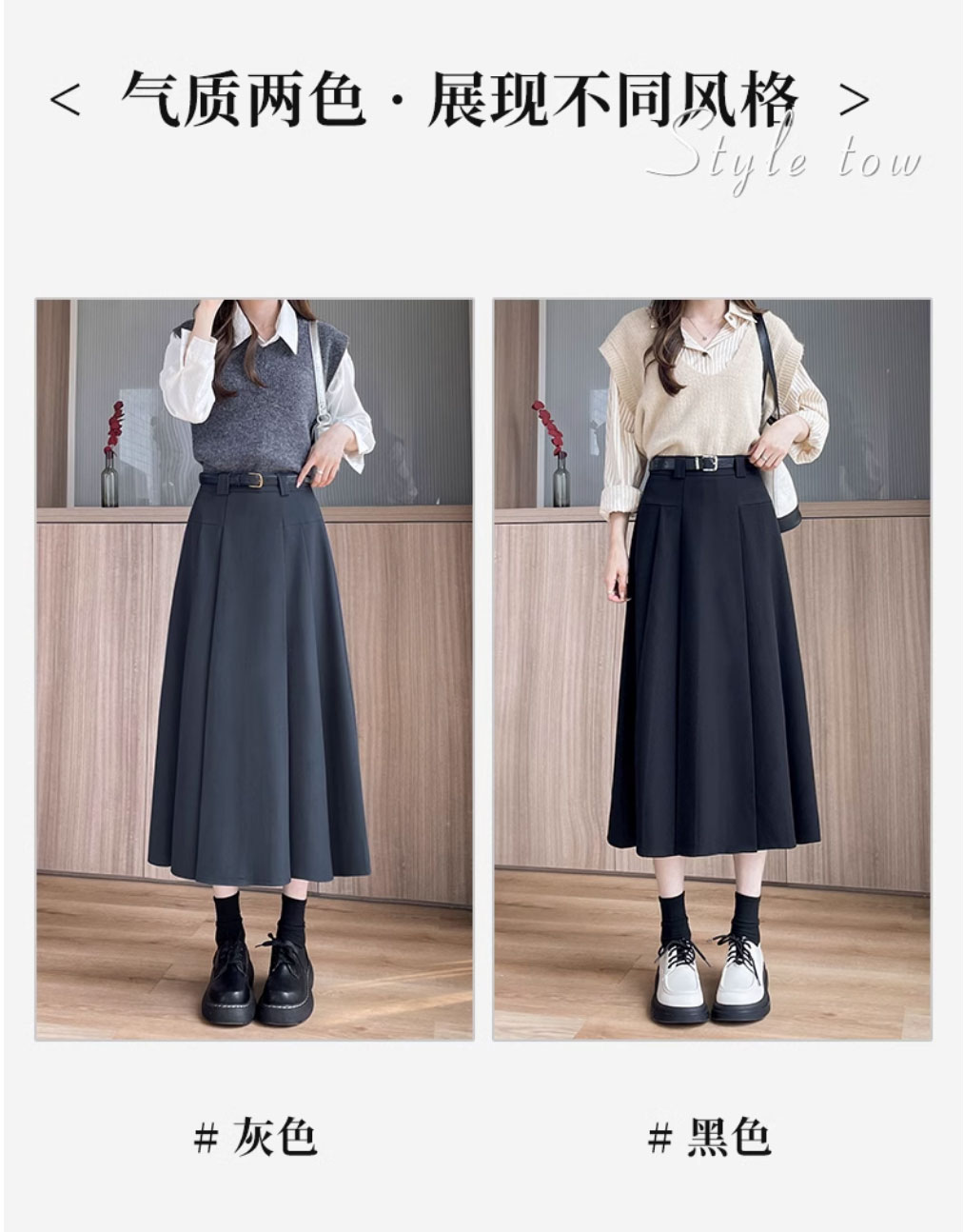 グレースーツスカート女性のための春と夏 2025 新しい韓国スタイルハイウエストスリム A ラインミドル丈プリーツスカート