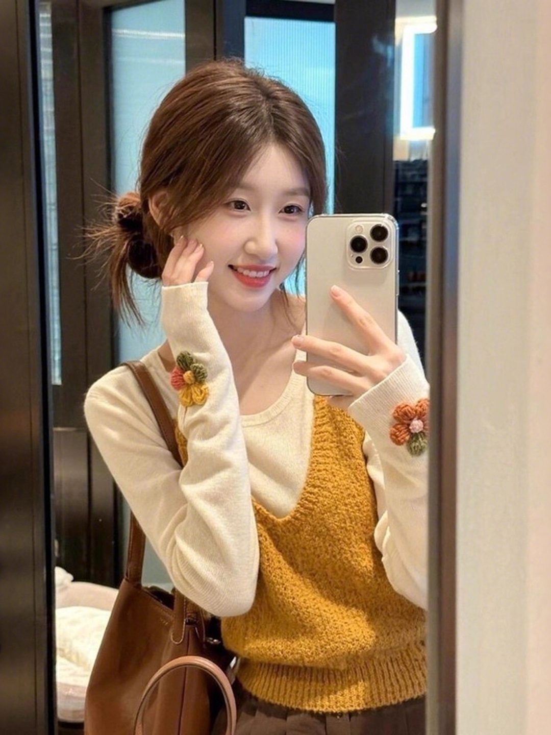 秋装2025新款设计感小众漂亮减龄黄色针织背心内搭两件套上衣女款