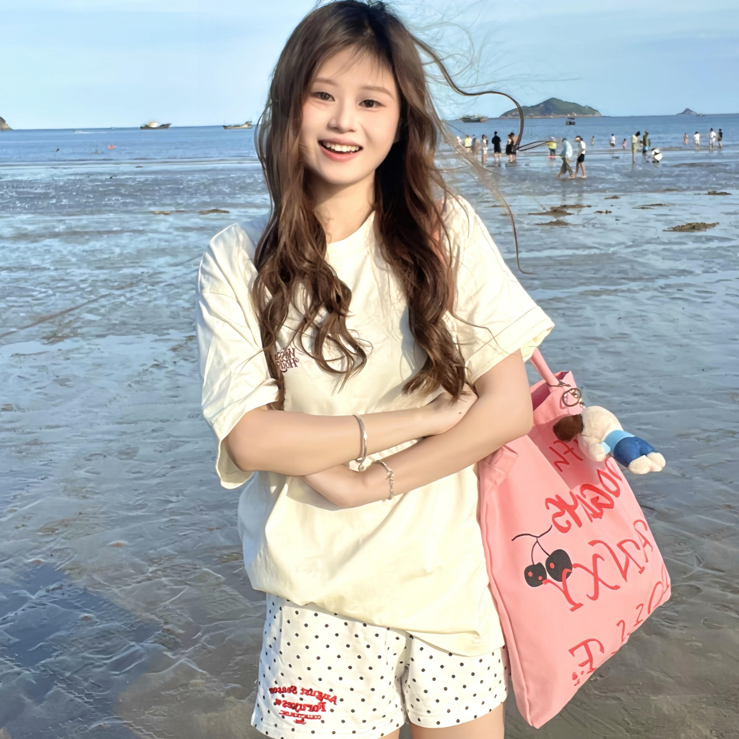 綿刺繍水玉カジュアルショーツ女性の夏の 2025 新しいハイウエストルーズ A ラインアメリカンスポーツワイドレッグホットパンツ