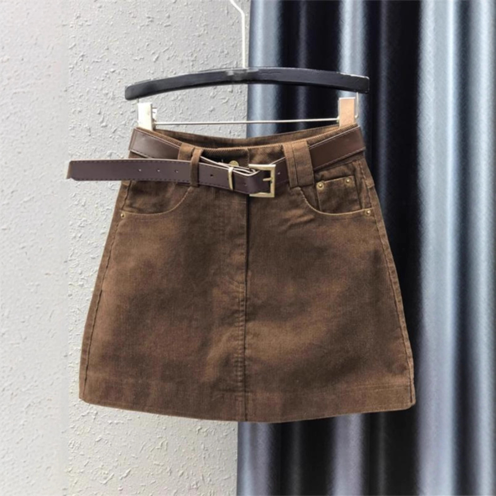 欧货辣妹灯芯绒半身裙女秋季时尚百搭包臀裙复古防走光a字短裙子