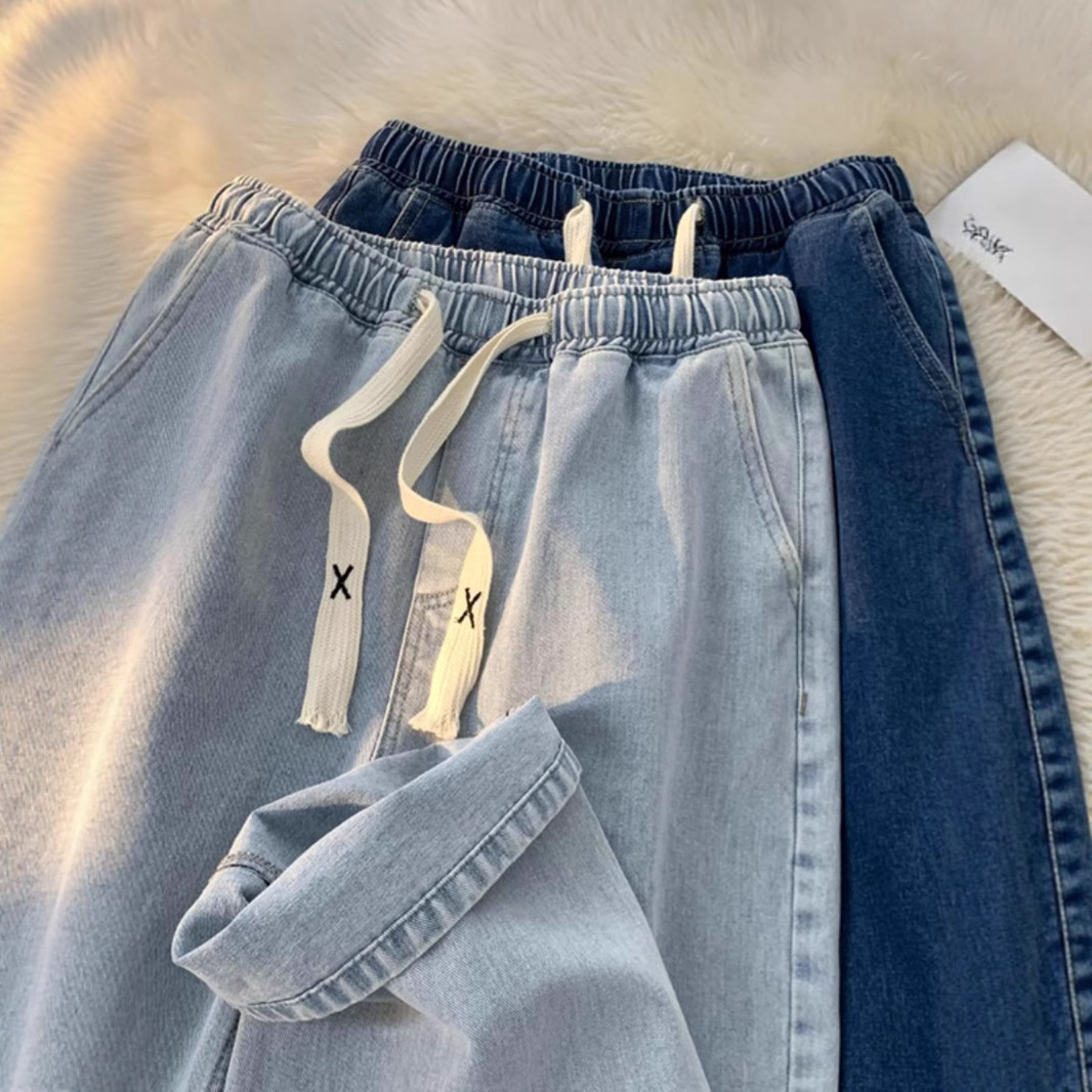 女性用テンセルソフト弾性ハイウエストアイスシルクジーンズ、ルーズストレート、小さいサイズ、大きいサイズ、夏用薄手ワイドレッグパンツ