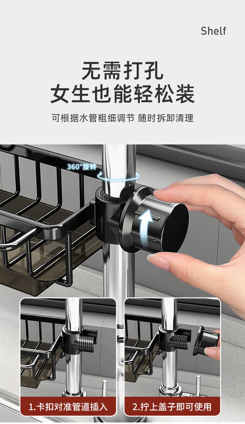 キッチン蛇口収納ラックシンク排水バスケット雑巾収納多機能棚パンチフリー洗面台排水