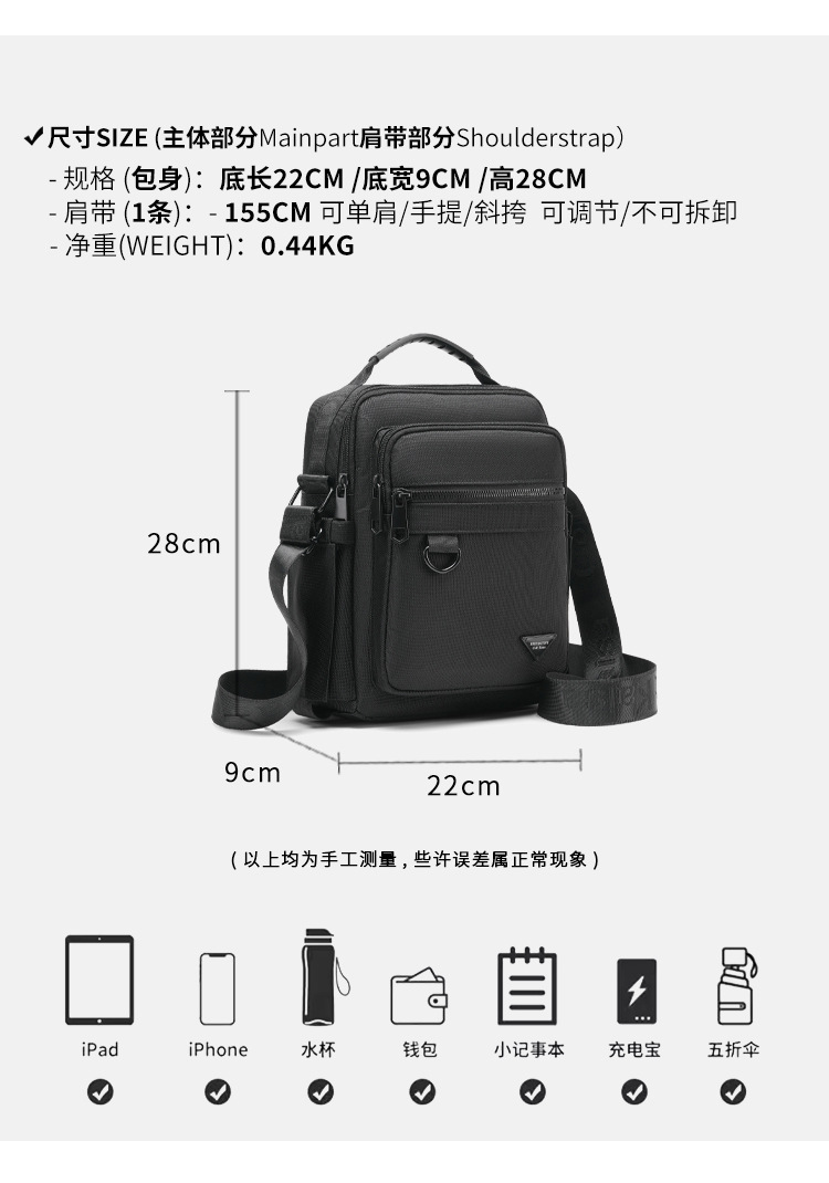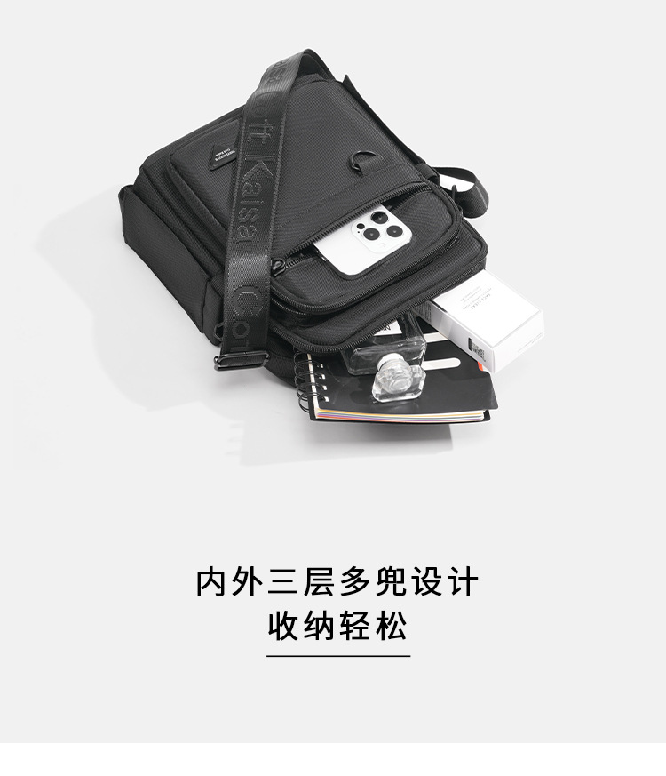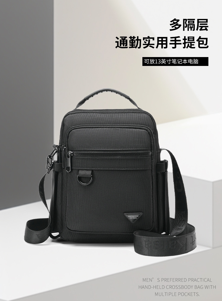 カスタマイズされたメンズバッグ、カジュアルな多層縦型小型バッグ、軽量で多用途なショルダーバッグ、トレンディな撥水クロスボディバッグ
