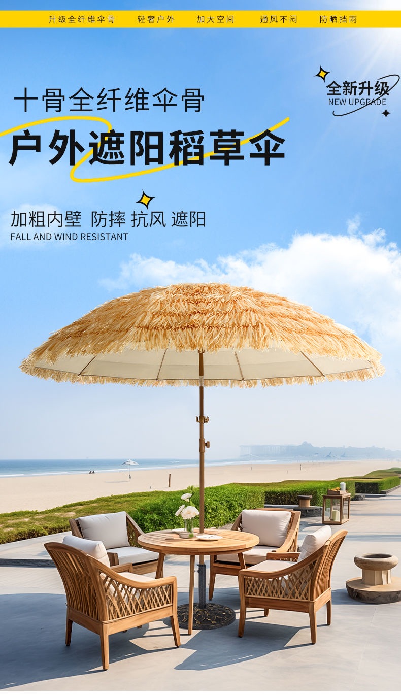 Yihao Ge ステンレス鋼アップグレードされた断熱屋外シミュレーションわら日傘中庭茅葺きビーチガーデン