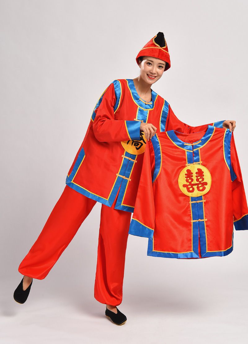 花轿運搬服、太鼓服、女性用パフォーマンス服、中国風の結婚式の太鼓服、男性用花轿運搬服、結婚式