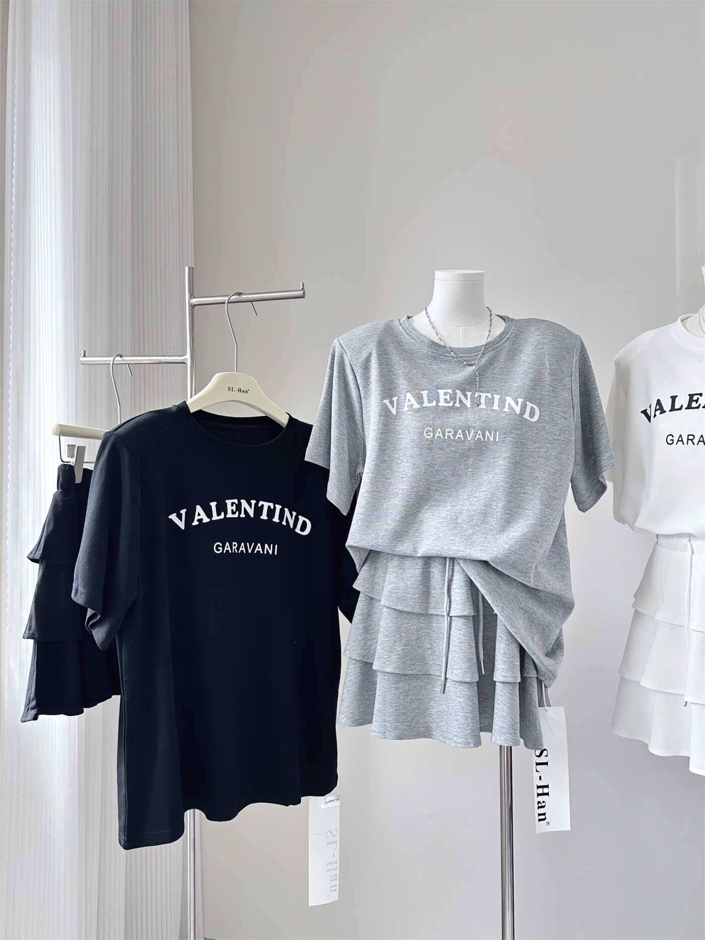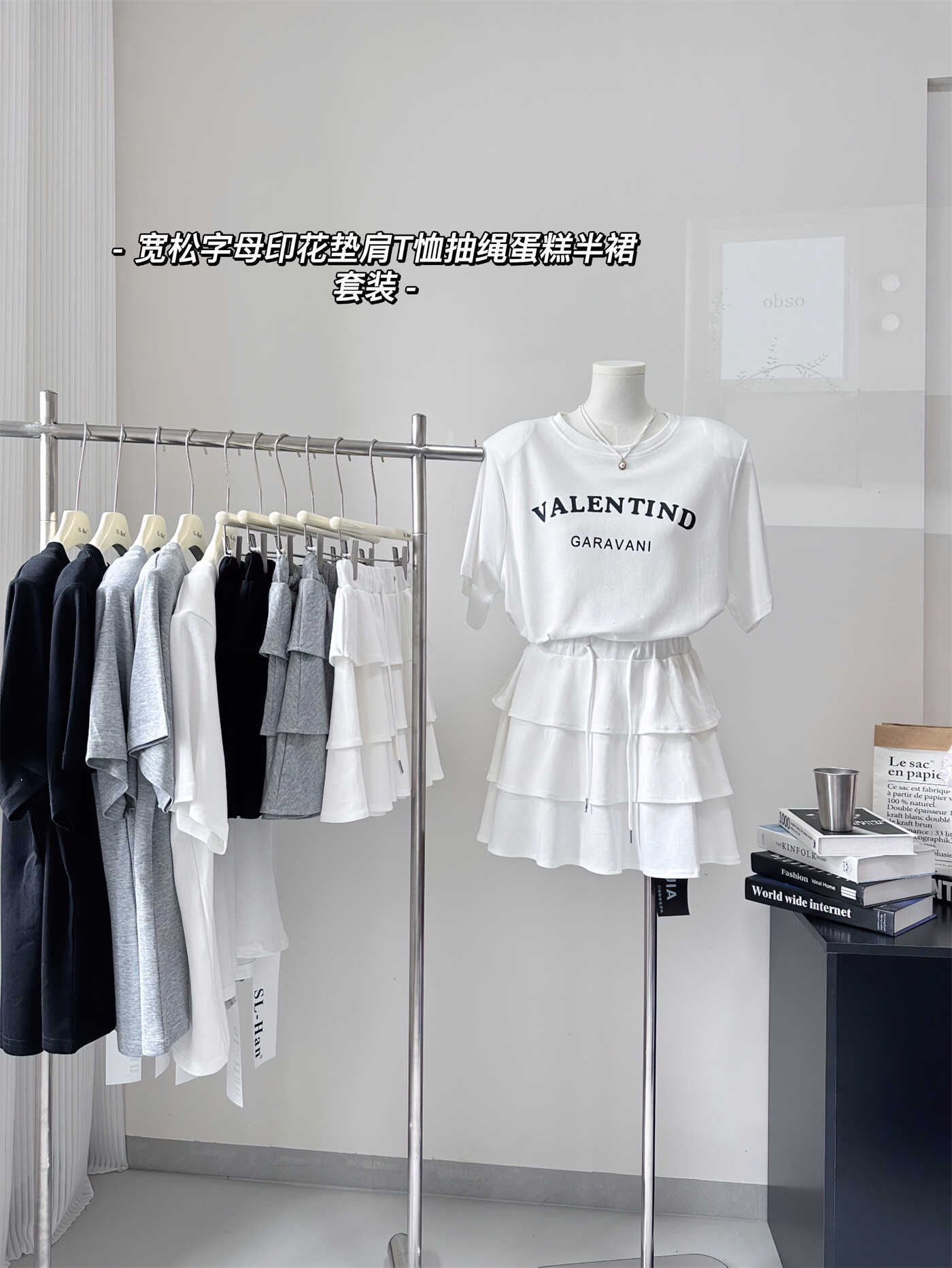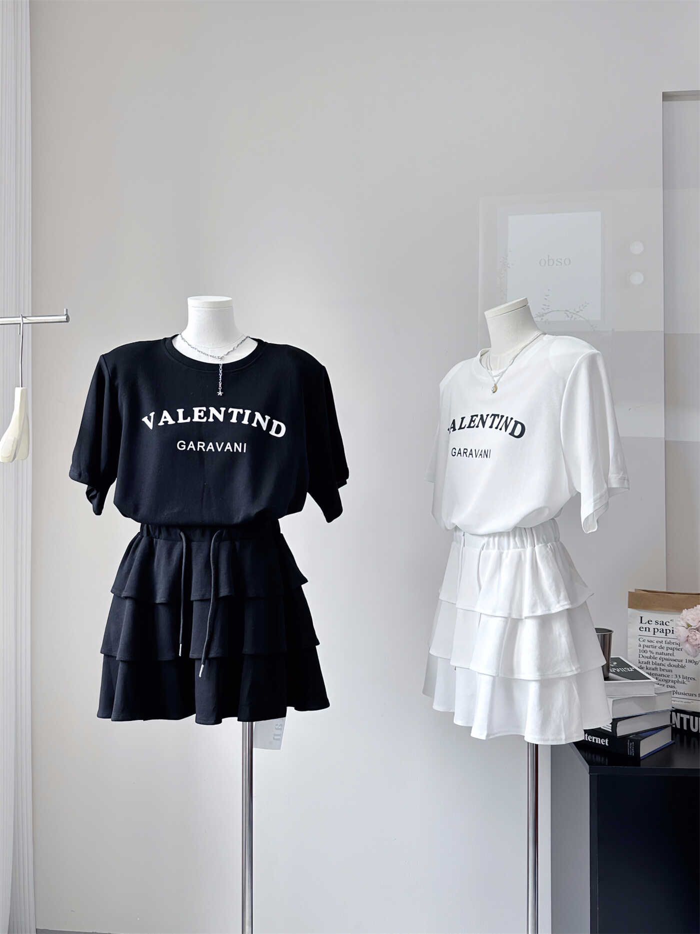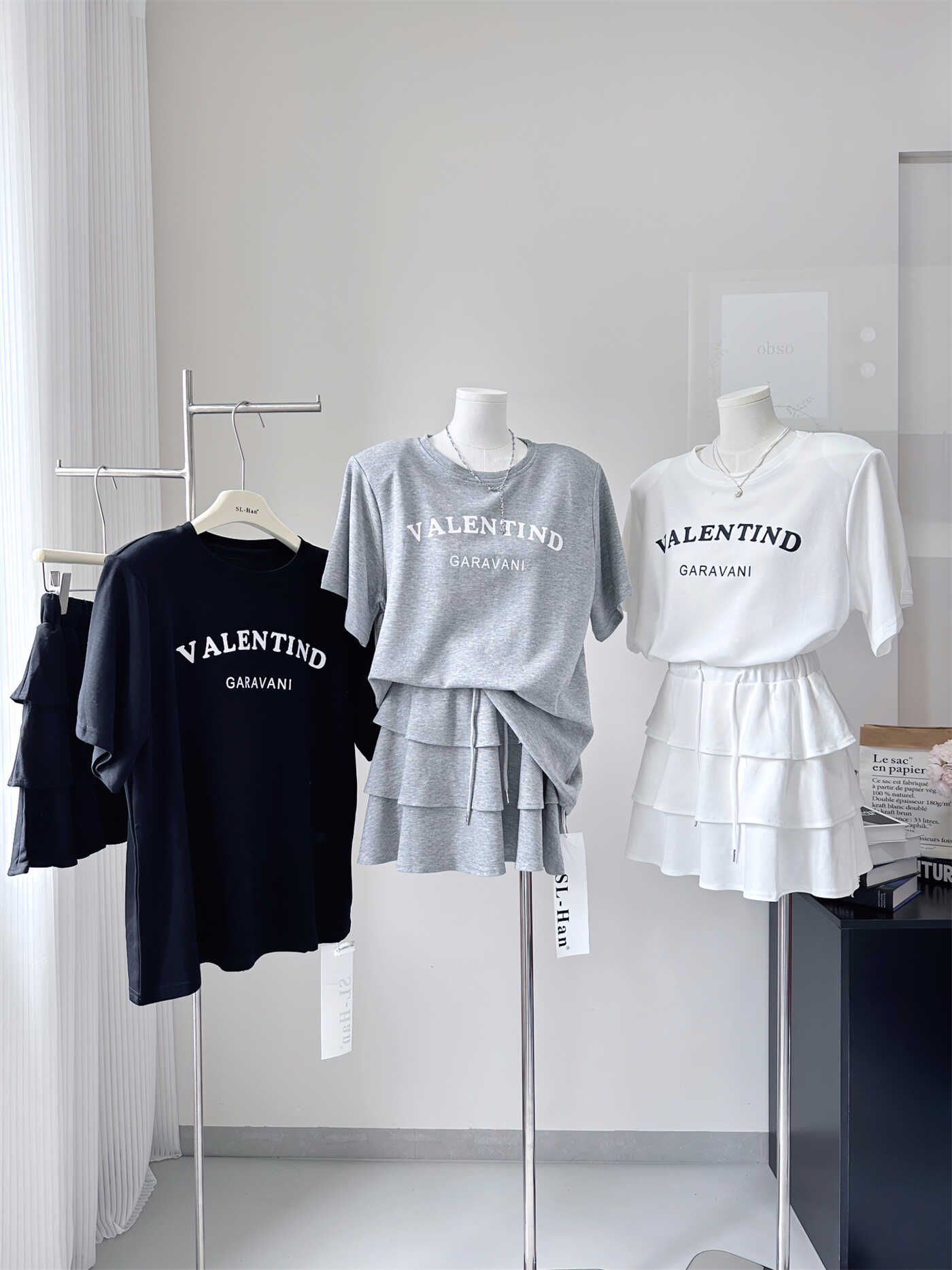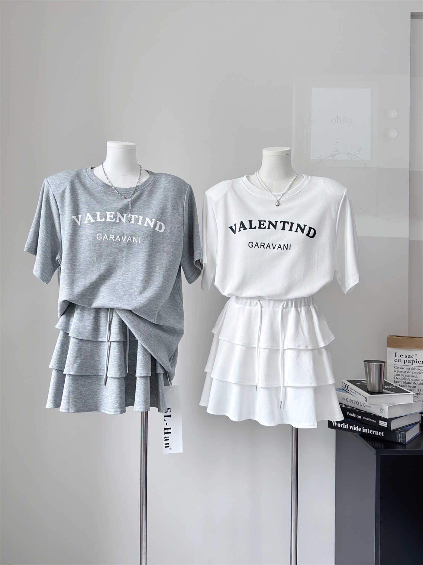 韓国東大門ファッションスーツレディースティーシリーズ半袖Tシャツケーキスカートカジュアルスポーツウェア2点セット