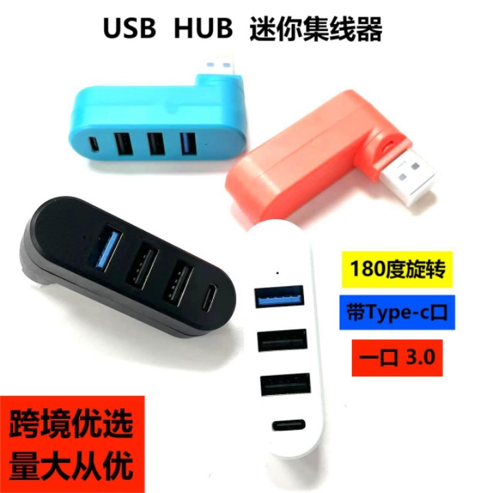 新製品 プライベートモデル 3.0USBハブ 1ポートUSB3.0 4ポートHUB Type-c拡張器 180度回転