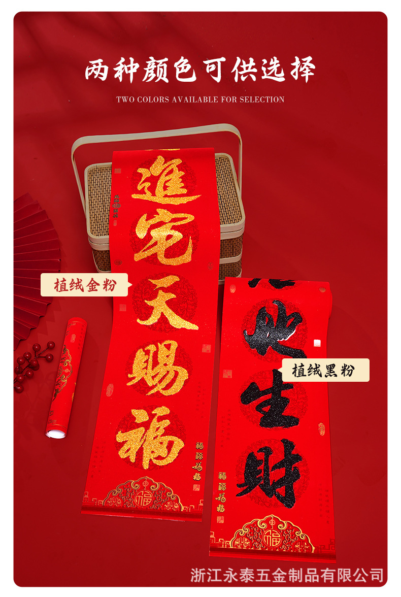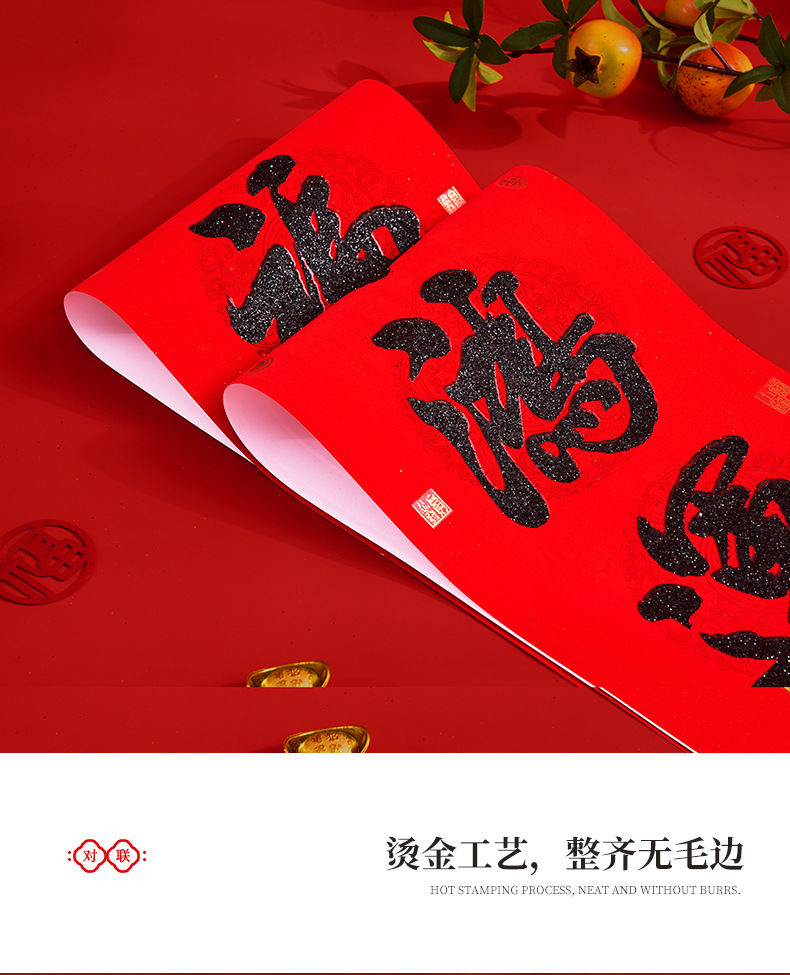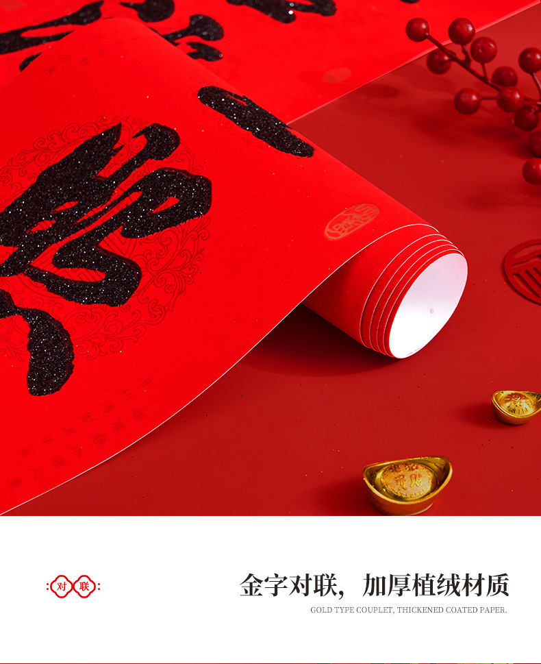 植毛ホットスタンピング対句、金張り春対句、箱入り植毛7言葉ドア、春節装飾、新年アレンジメントメーカー