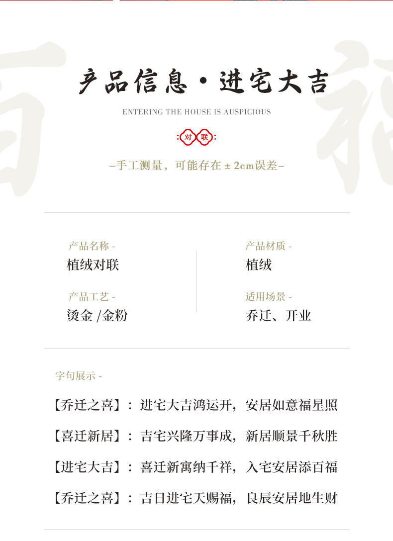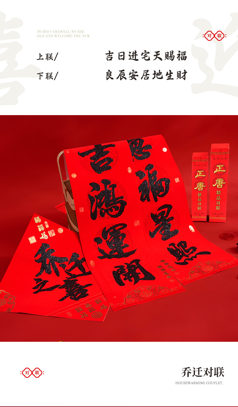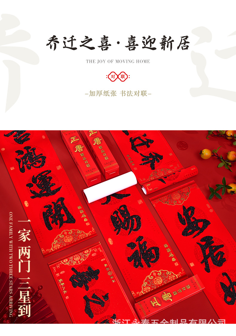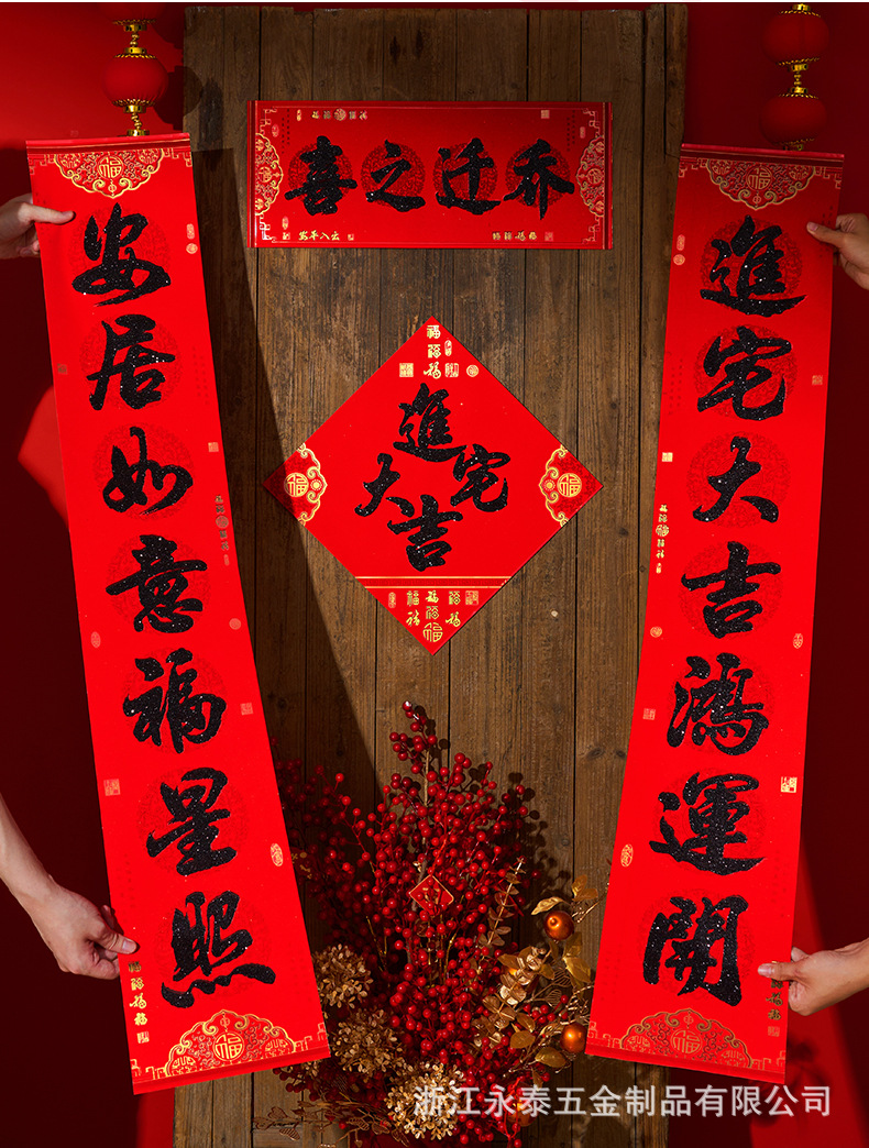 新築祝い、引っ越し、春節玄関ドアステッカー、卸売高級植毛箱入り対句、新居
