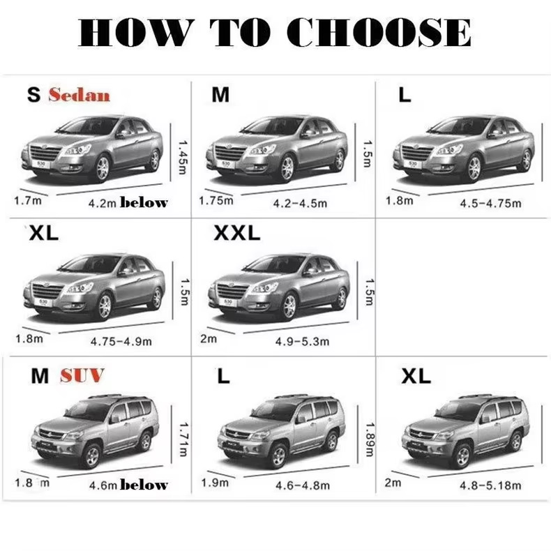 2S(ハッチバック小型),2M(ハッチバック中型),2L(ハッチバックLサイズ),3S(セダン小型),3M(セダン中型),3L(セダン用Lサイズ),3XL (セダンプラス),3XXL (セダン用特大サイズ),YM(SUV小型),YL(SUV中型),YXL(SUVラージサイズ)