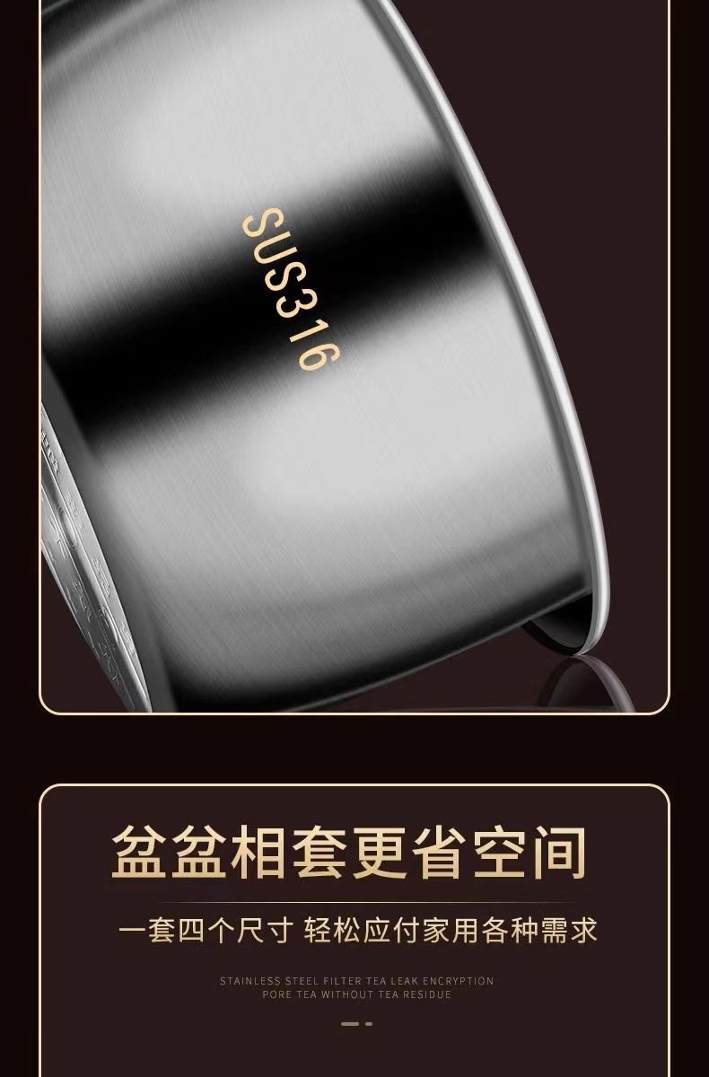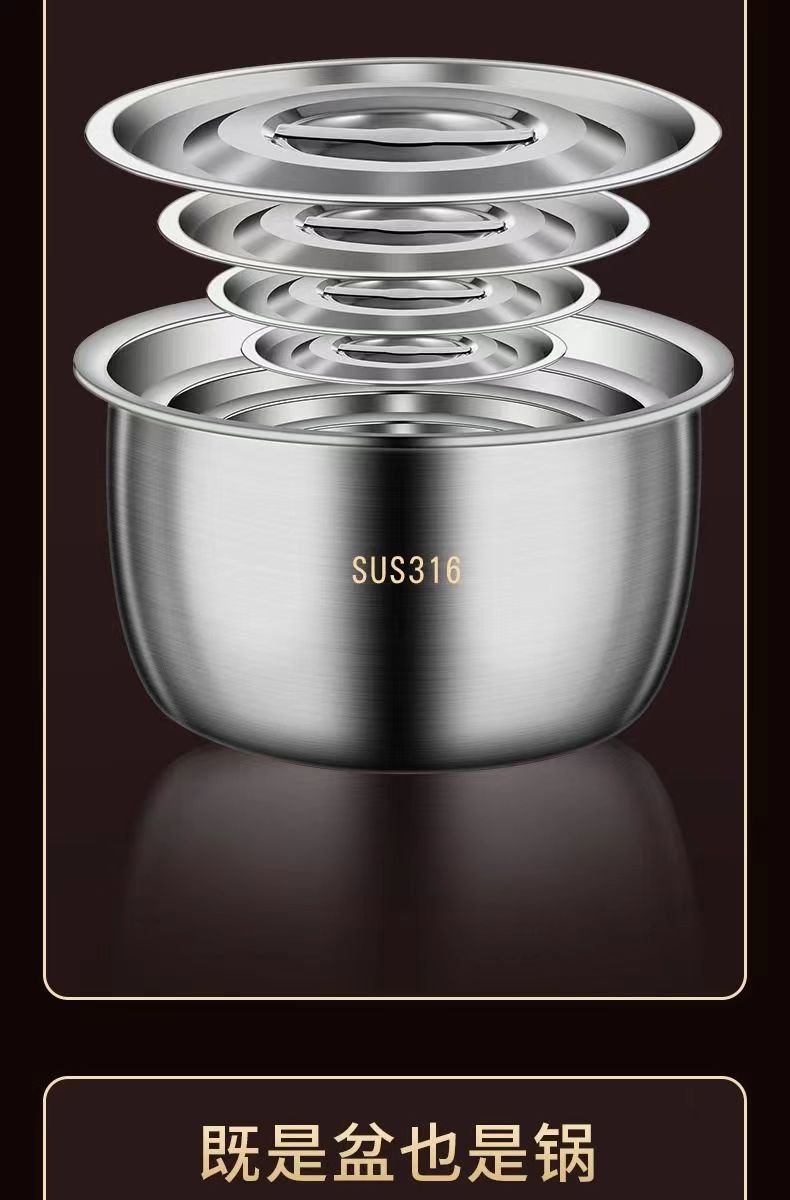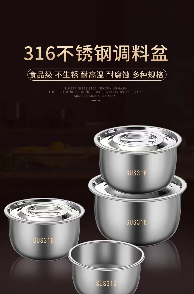 316L不锈钢滤油锅加厚配盖提手猪油盆加深油炸锅家用打蛋盆储油罐