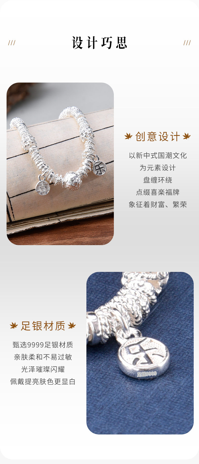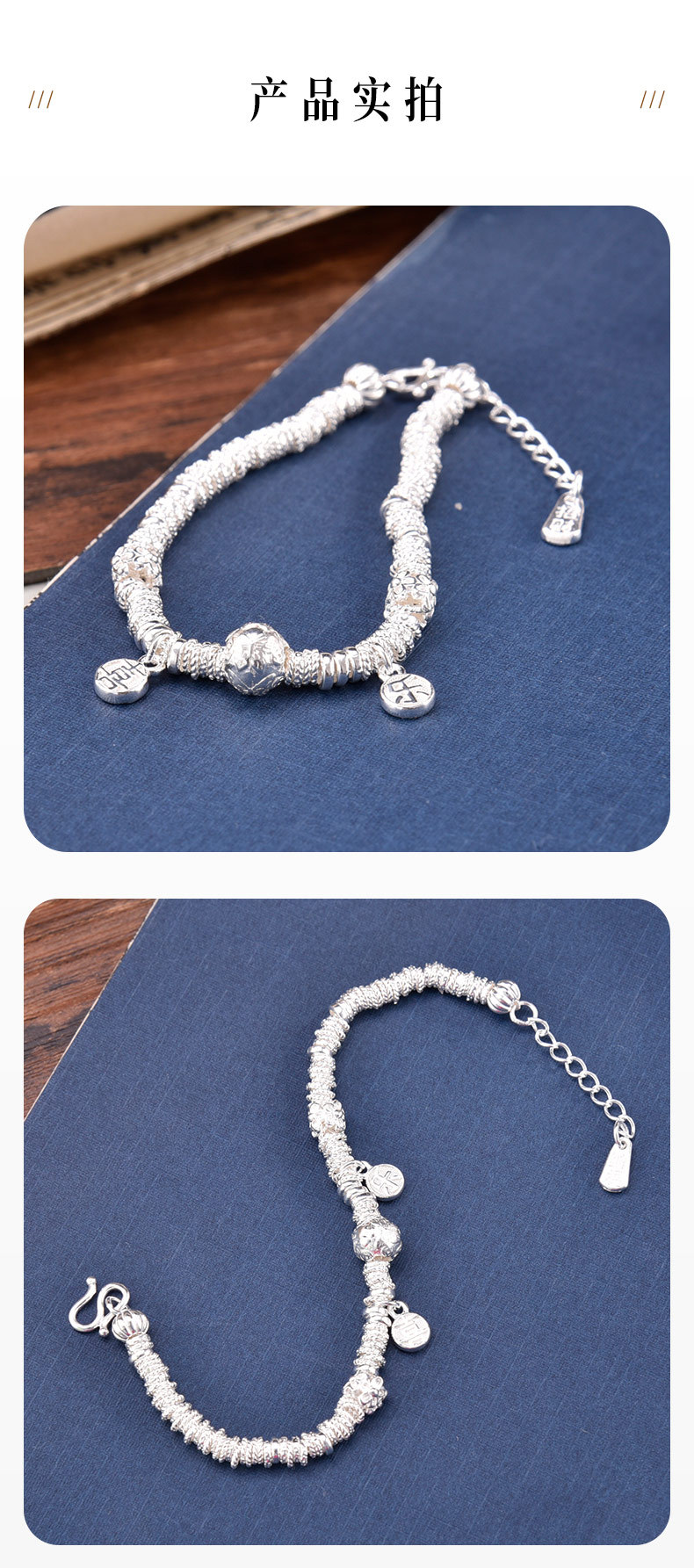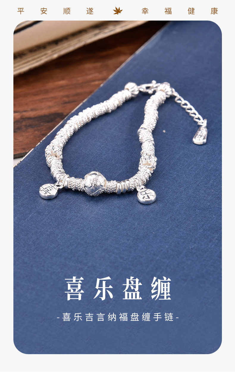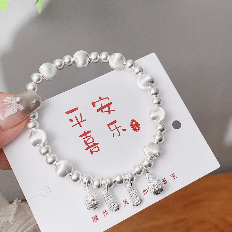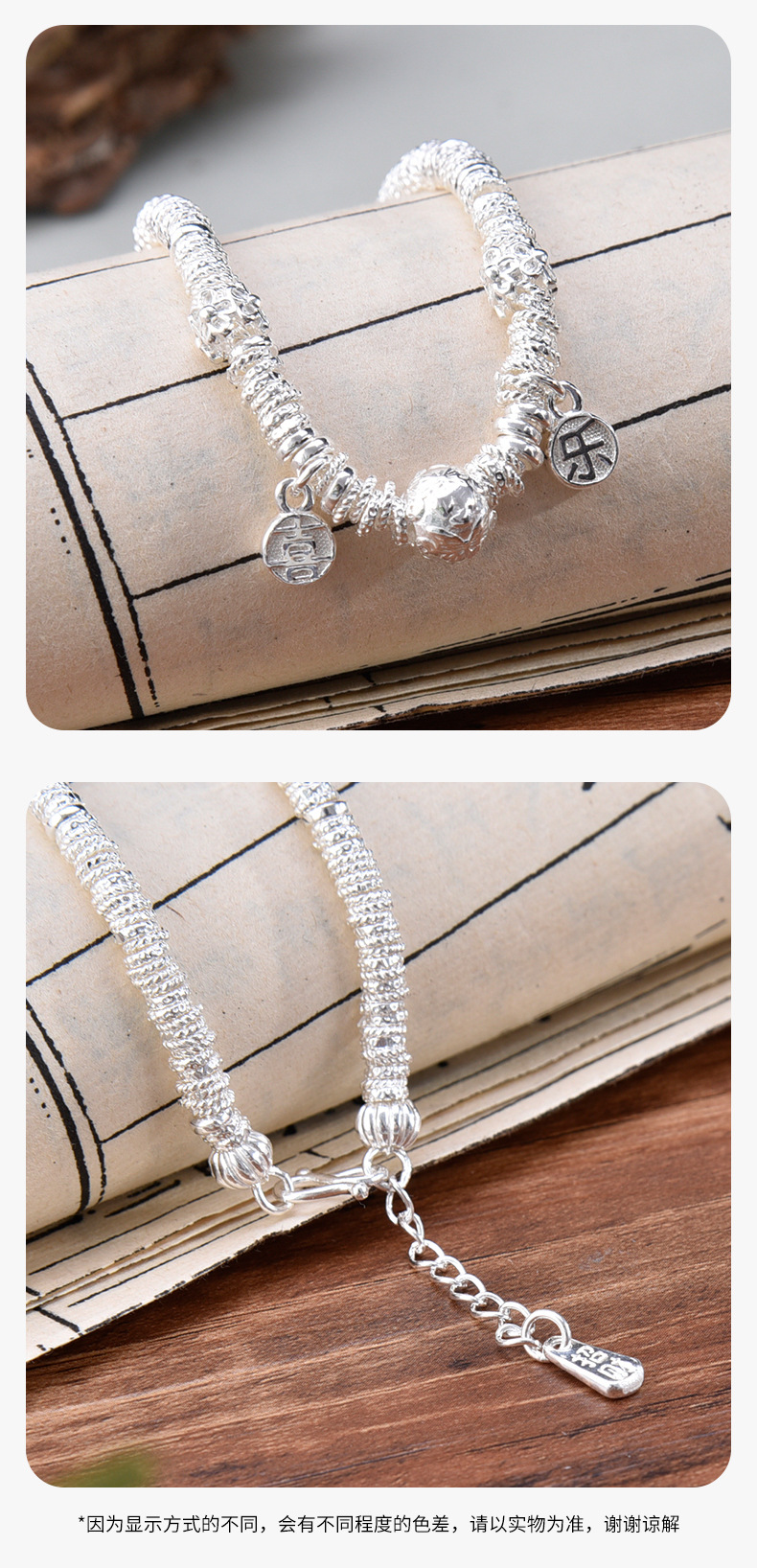平安と喜び 9999 スターリングシルバーブレスレット男性と女性のための新しい中国風ラウンドビーズブロークンシルバー純銀ブレスレット誕生日ギフト