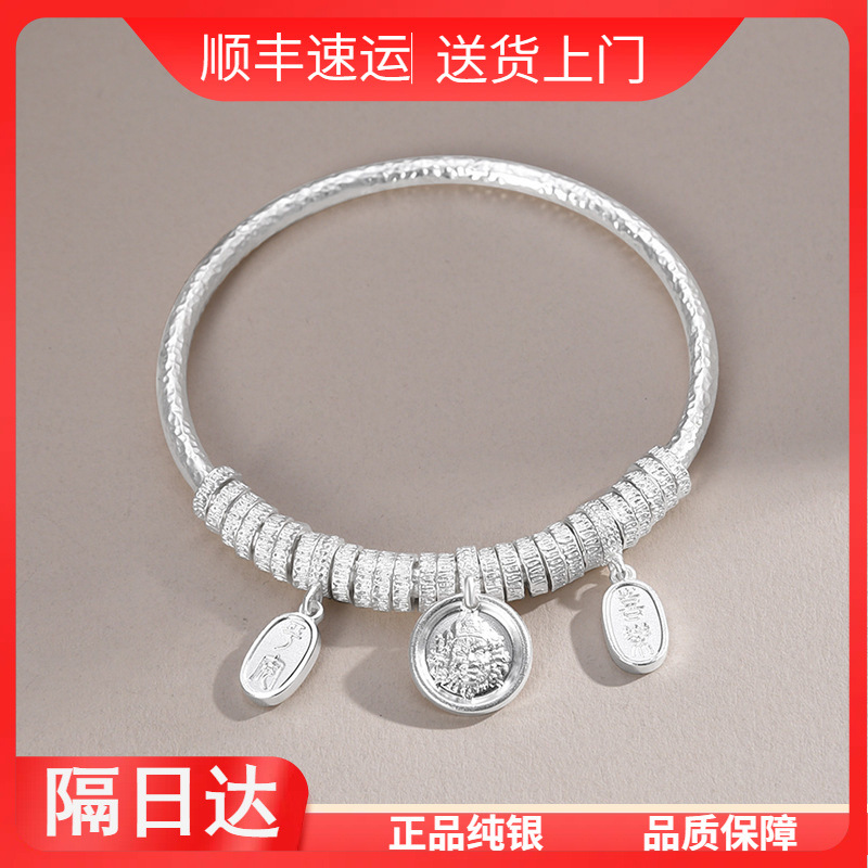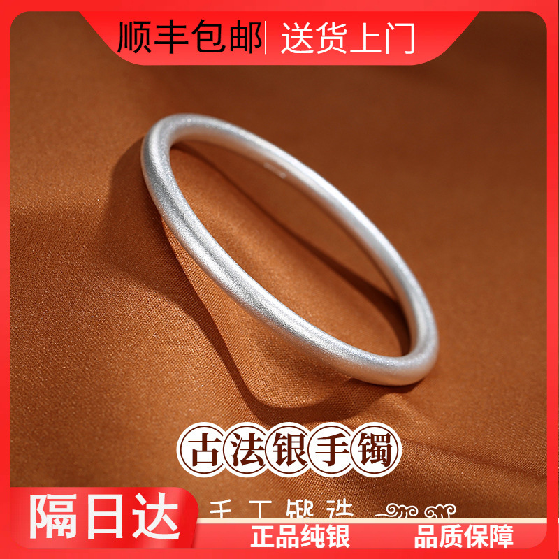 9999純銀のブレスレットの女性の古法の素の輪の手作りの砂の足の銀の腕輪の男のネットの赤い古風は口を閉じて手の輪を伝承します。