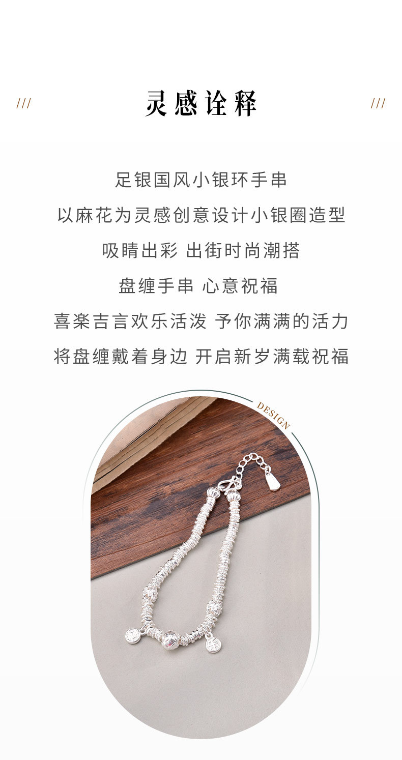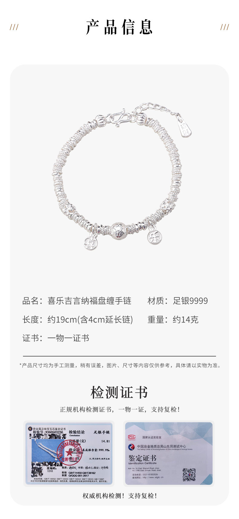 足银999五帝钱盘缠纯银手链新中式国风平安喜乐手串情人节送礼物