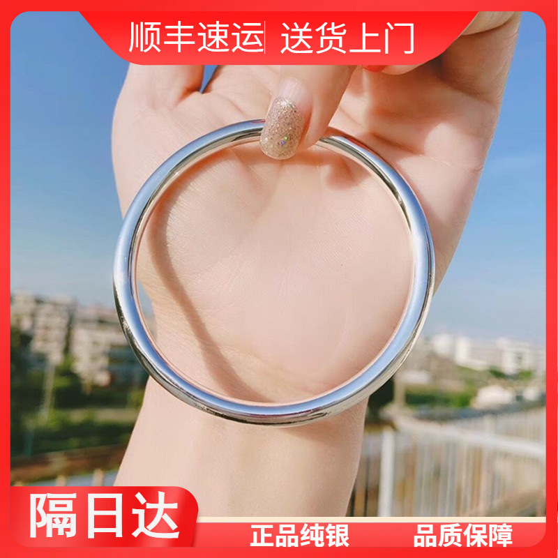純銀9999光沢無地丸棒ブレスレット 女性用 クローズドタイプ ソリッドブライトフェイス カップル向け シンプルで汎用性の高いブレスレット 男性用