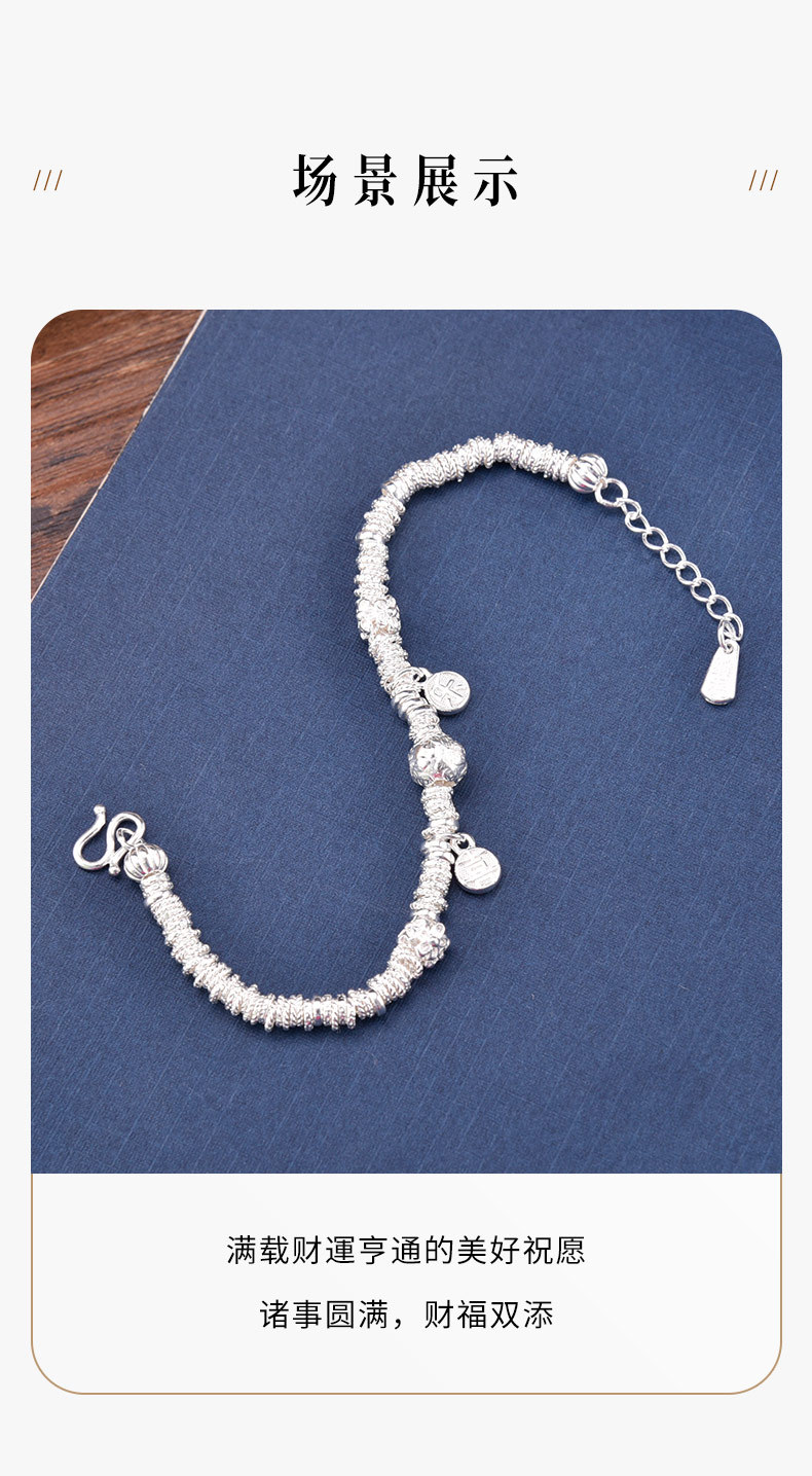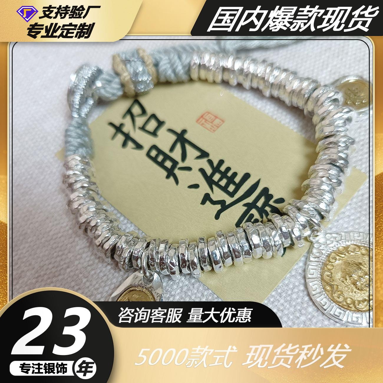 9999纯银五帝钱碎银手链男女新中式平安铜钱足银盘缠手串银饰批发
