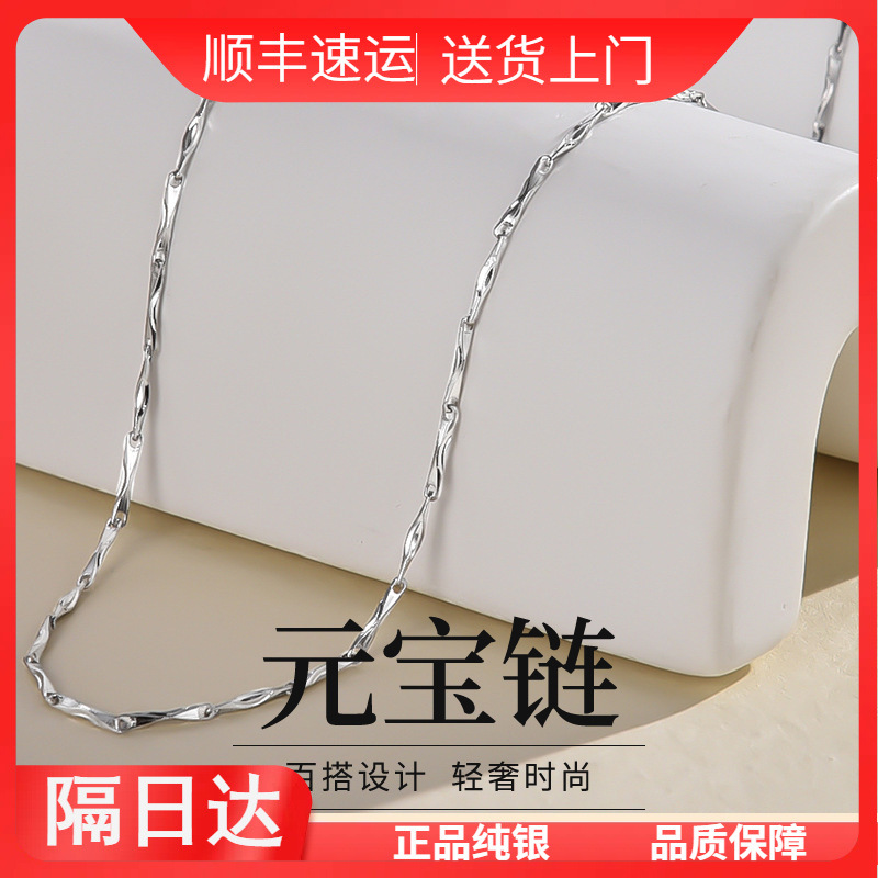 S925純銀手作り元宝チェーン女性ファッション足銀ネックレス男女中実鎖鎖鎖百合カップルチェーン