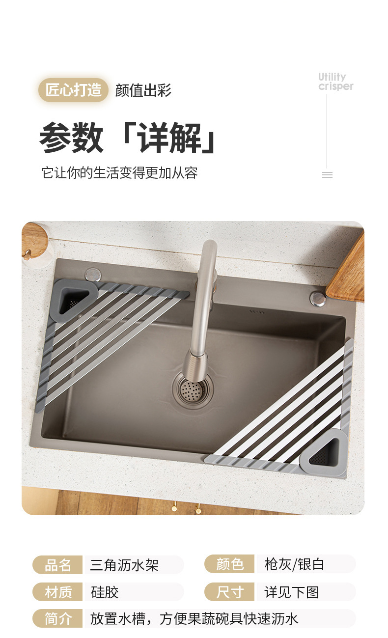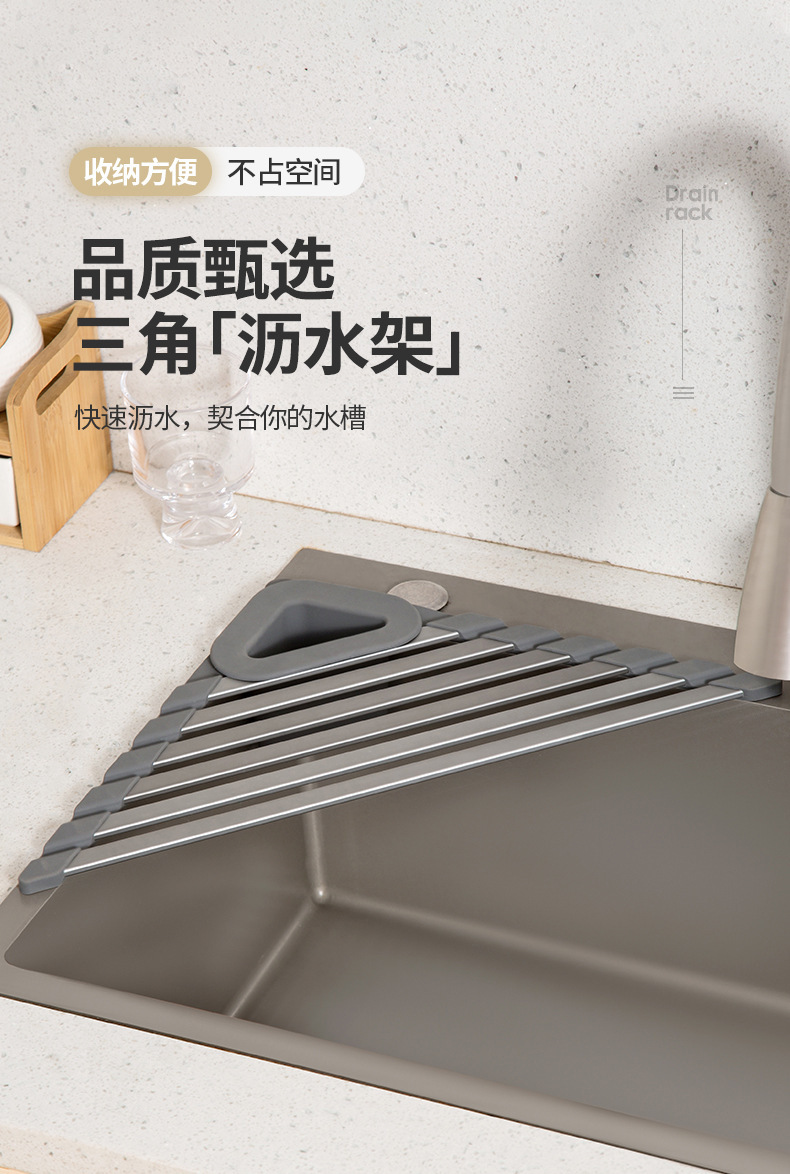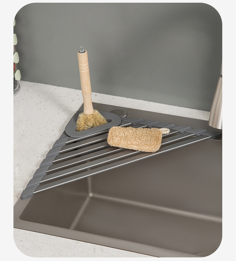 シリコン排水ラック、軽量折りたたみ三角シンク収納ラック、排水ラック、食器ラック、スポンジ排水ラック、ローラーブラインド