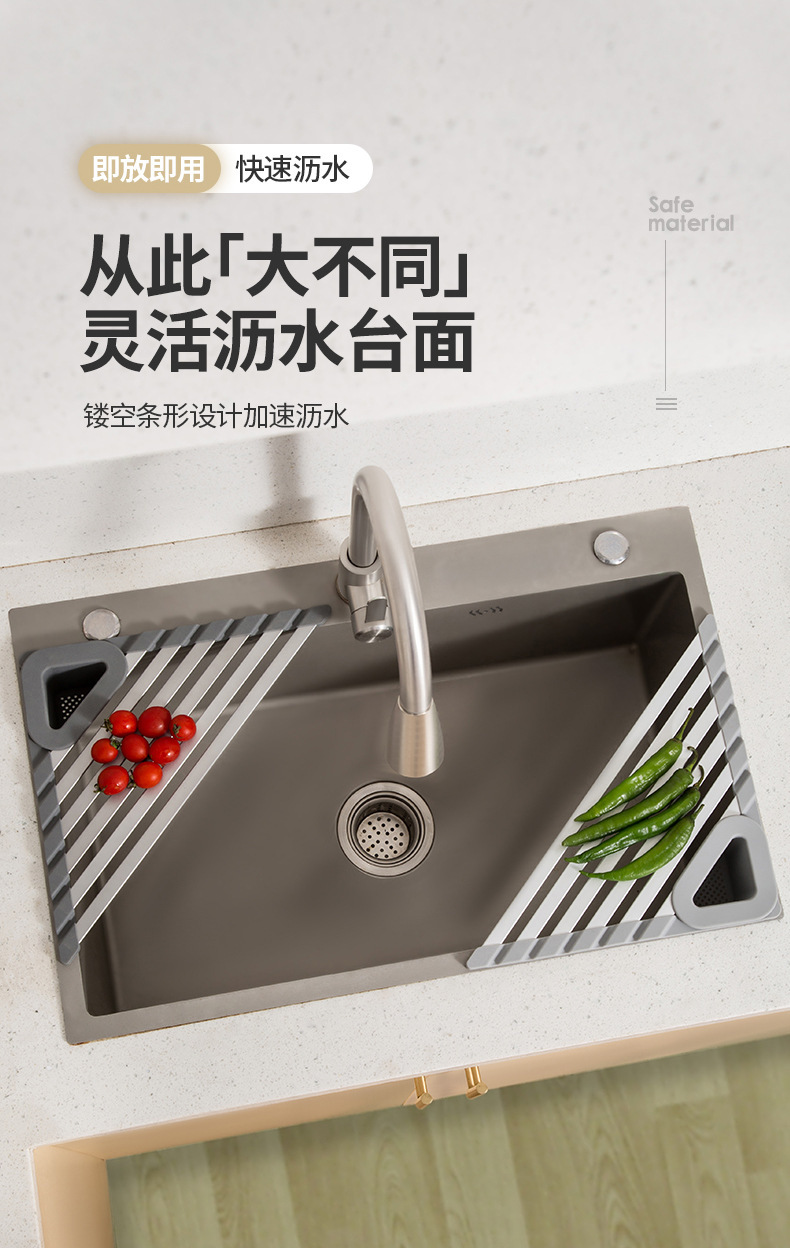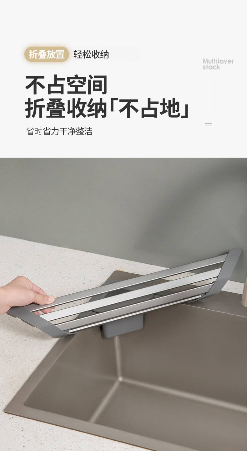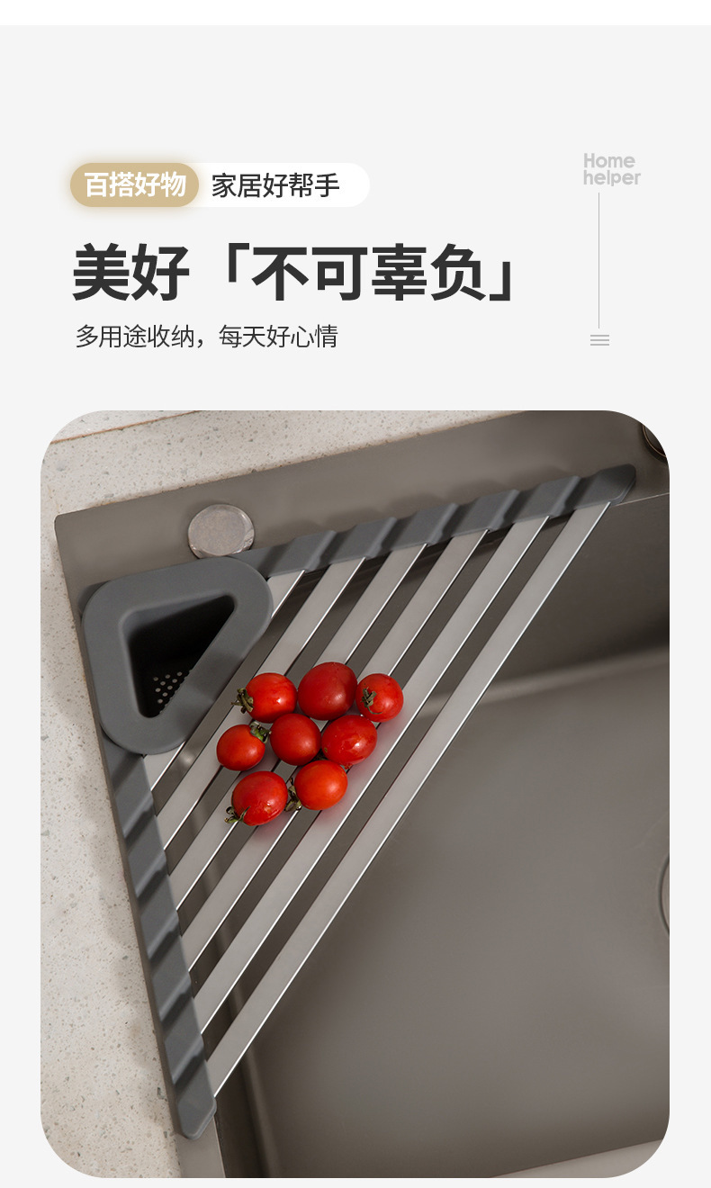 シリコン排水ラックローリングカーテンキッチンシンク排水ラックアルミ合金折りたたみ排水ラックライト高級シリコン収納ラック