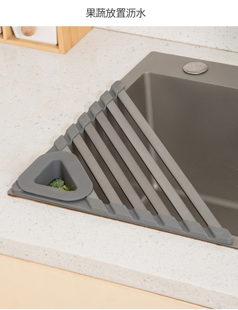 折りたたみ式シリコンキッチンシンク排水ラック三角断熱果物と野菜の水フィルターラックシンクローラーボウルと箸の収納ラック