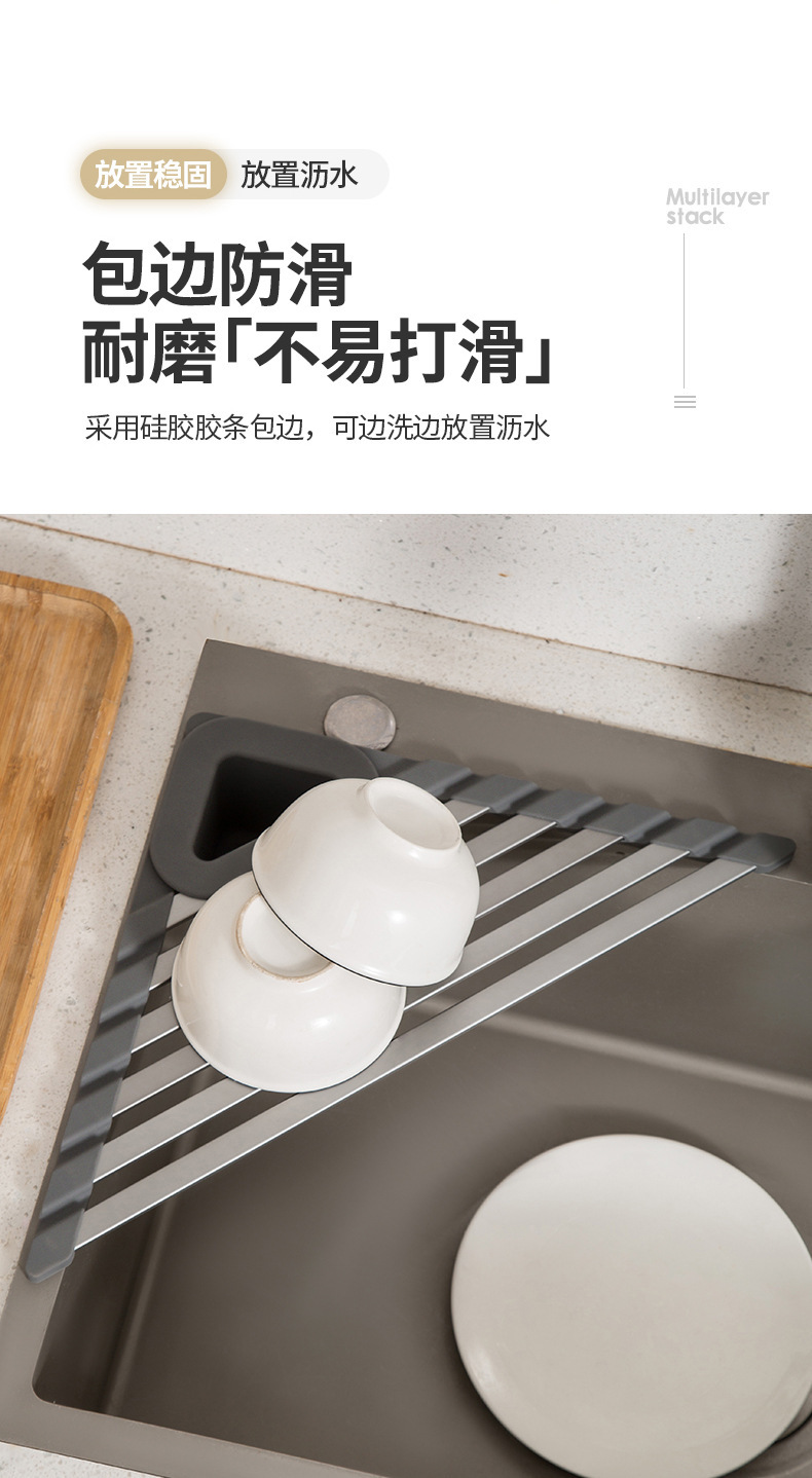 スポットシリコン排水ラック軽量折りたたみ三角シンクラック排水ラックボウルと箸ラックスポンジ排水ラック