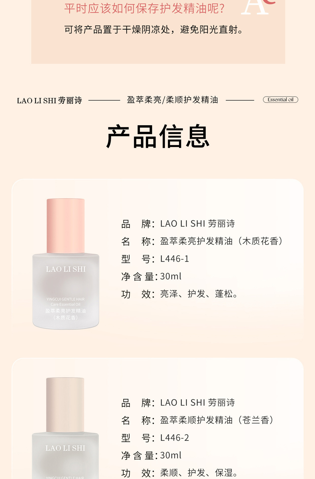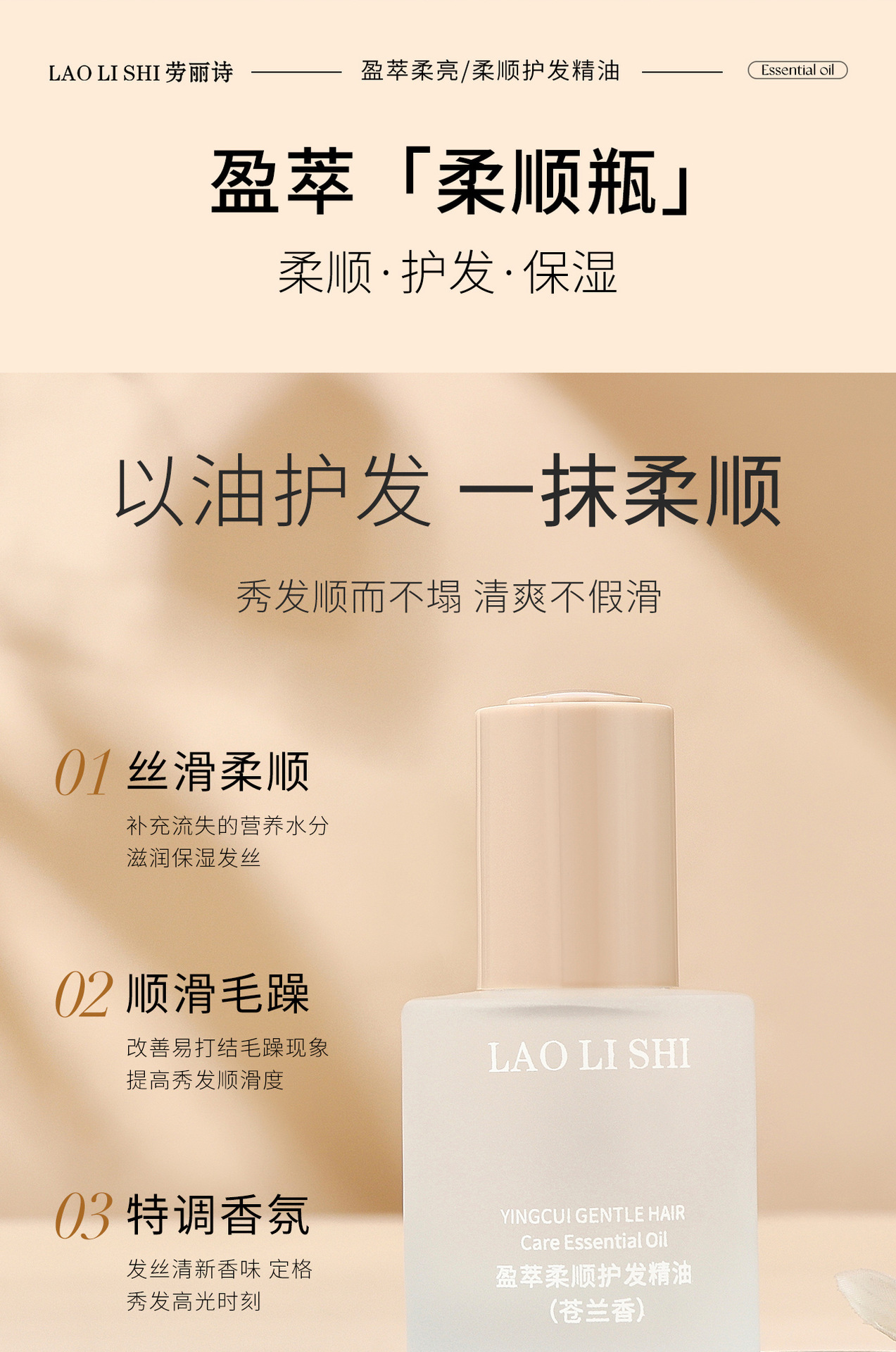 Laurie Shi Yingcui ソフト、ブライト、スムース ヘアケア エッセンシャル オイルは、乾燥を改善し、滑らかで縮れを軽減し、軽くてふわふわの香りが長持ちします。