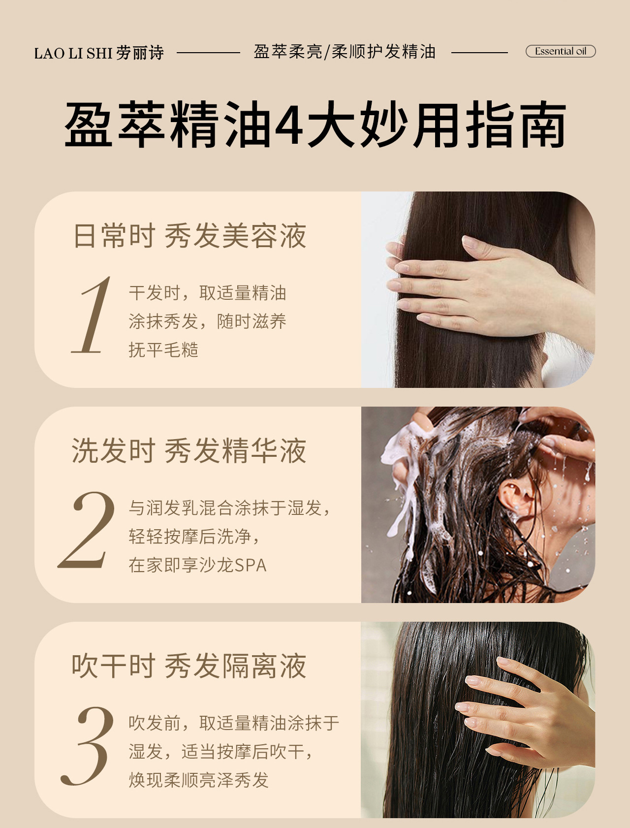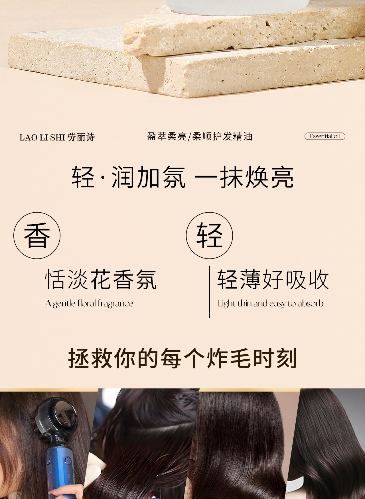 Laurie Shi Yingcui ソフト、ブライト、スムース ヘアケア エッセンシャル オイルは、乾燥を改善し、滑らかで縮れを軽減し、軽くてふわふわの香りが長持ちします。