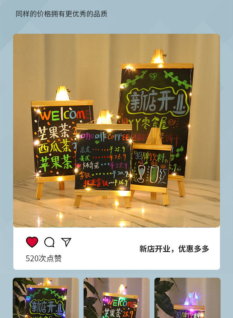 小さな黒板屋台、小さな黒板、発光屋台、ミルクティーショップ、レストラン、クリエイティブディスプレイボード、バー装飾、スーパーディペン