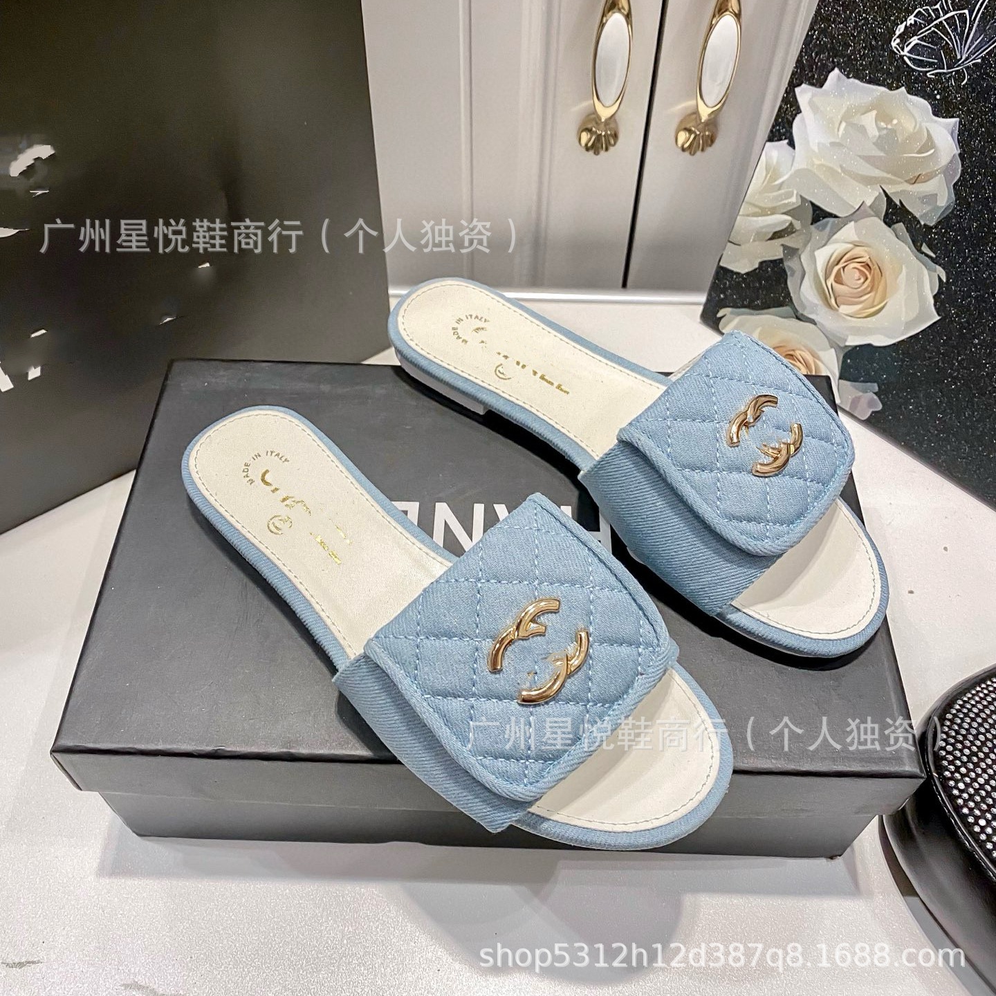 シリーズ2025菱格金属ボタン平底一字帯夏の新型真皮気質カジュアル露指凉引女