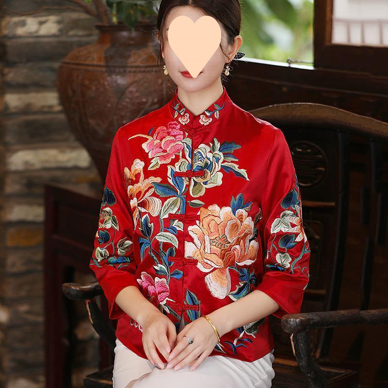 中国風の婦人服 2025 春と秋の新しい改良された若いスタイルのチャイナドレスレトロ刺繍ガールボタン中国トップ