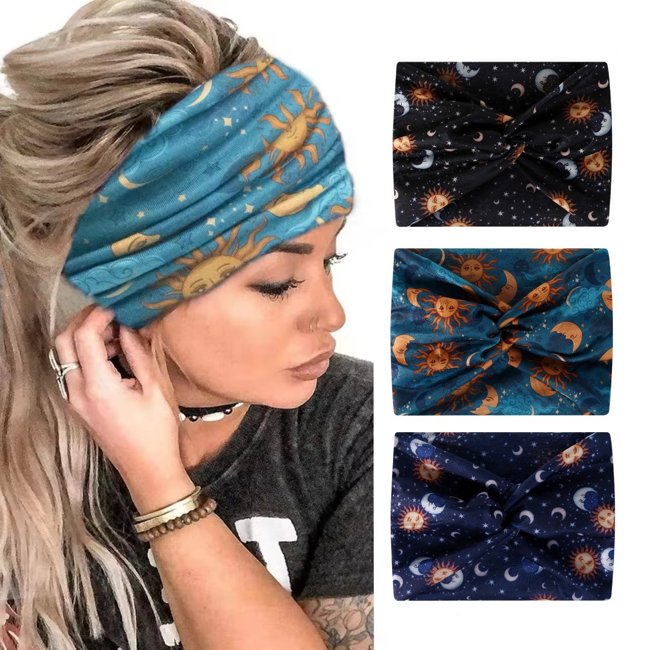 ヨーロッパとアメリカのボヘミアンスタイルのつば広ヘアバンドクロスボーダー弾性綿スポーツヘアバンド女性ヨガ吸汗ヘッドスカーフ