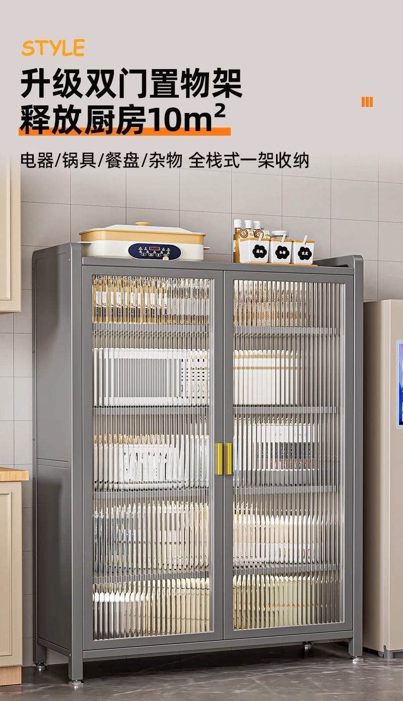 家庭用両開き収納キャビネットキッチンキャビネットダストプルーフドア付き収納キャビネット高さのある床から天井までの収納ラック