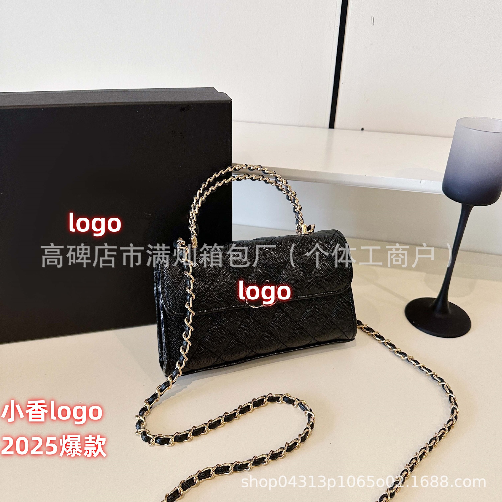 2025新款小香手提kelly包菱格链条包荔枝纹斜挎百搭小香风链条包