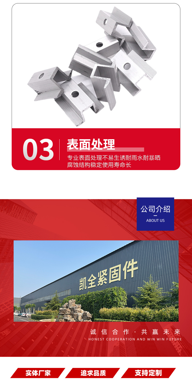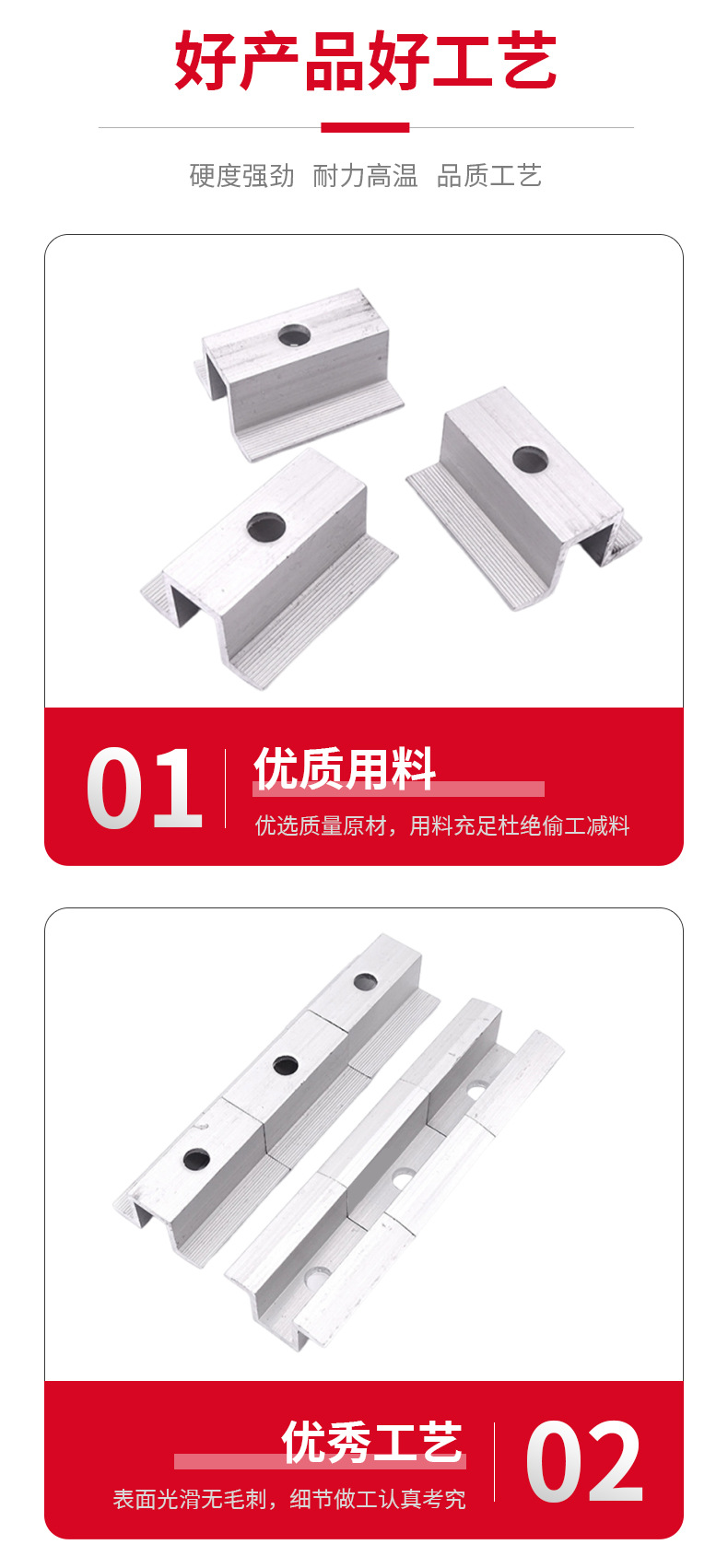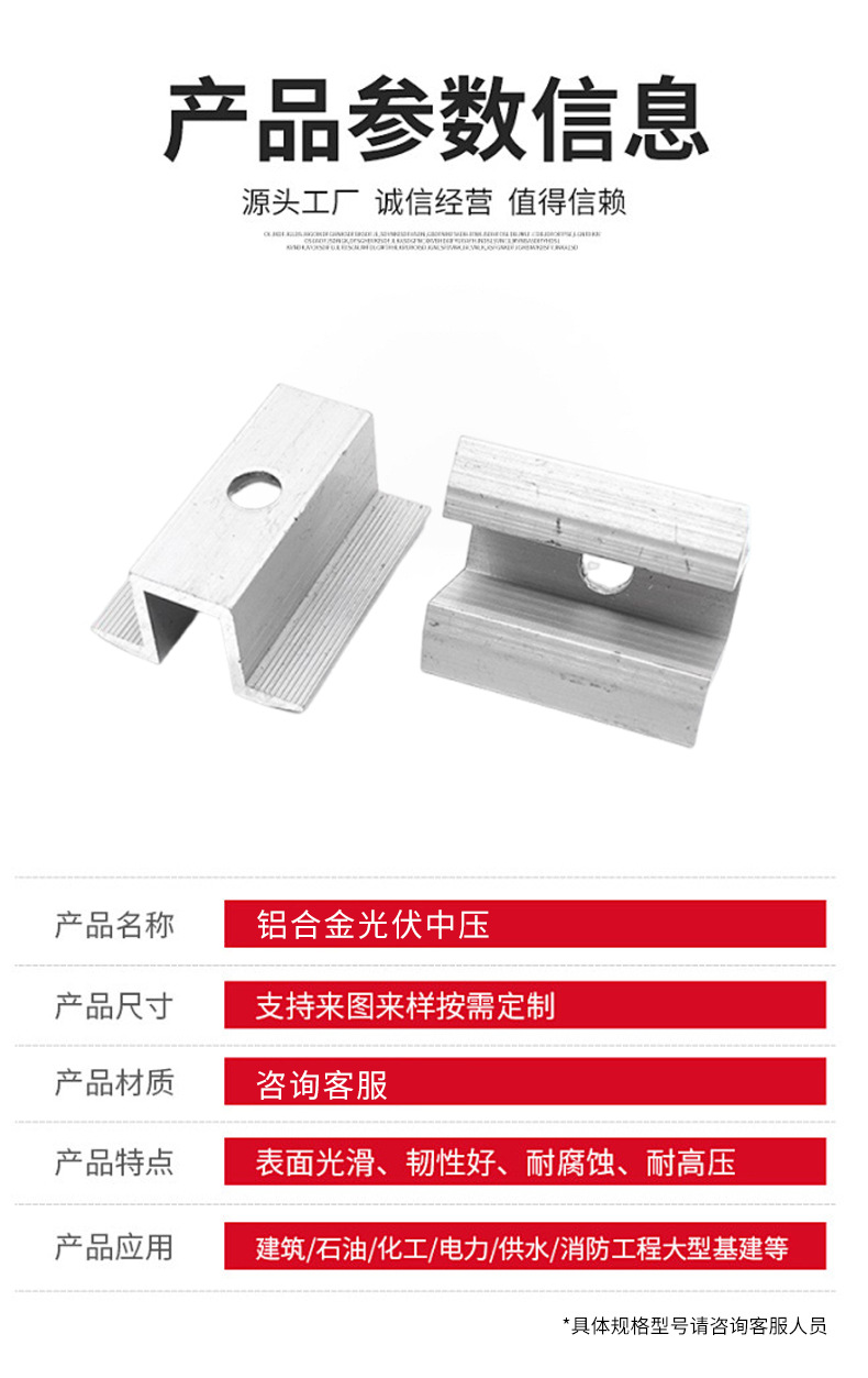 铝合金光伏支架压块中压边压组件阳极氧化整套光伏压板中压边压块