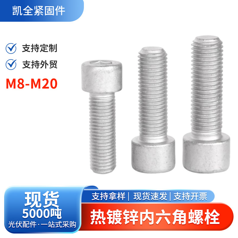 溶融亜鉛めっき六角穴付きボルト 炭素鋼8.8級円筒頭ボルト 太陽光発電用ネジ 溶融亜鉛めっき皿頭ボルト