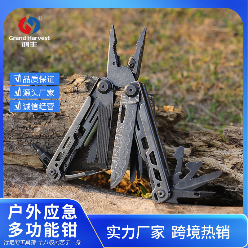 鸿丰多功能钳大马士革钢多用刀钳户外应急工具尖嘴钳