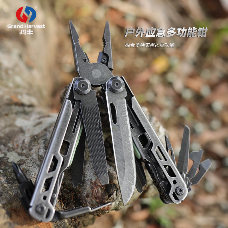 Honfeng クロスボーダーホット販売多機能ペンチダマスカス鋼多目的ナイフプライヤー屋外緊急折りたたみラジオペンチ