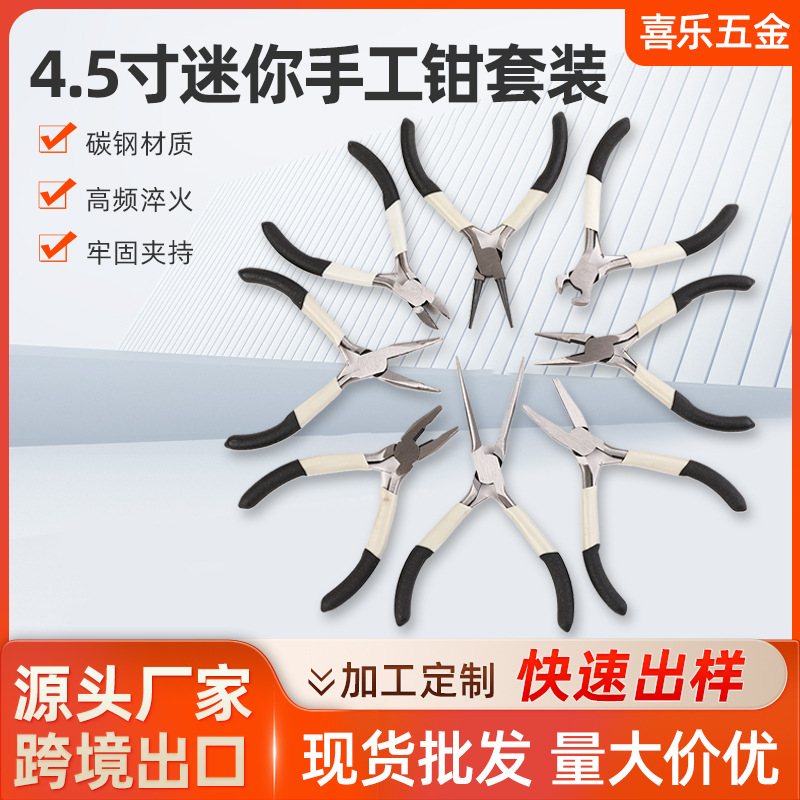 4.5寸迷你手工钳套装碳钢尖嘴钳圆嘴钳八件套批发高剪切力