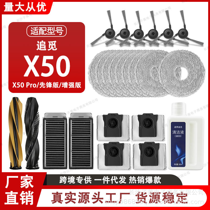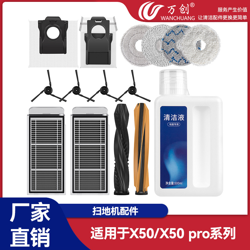 追米X50/X50PRO強化版掃除機用アクセサリー、ダストバッグ、サイドブラシ、モップ、ローラーブラシ、消耗品、洗浄液