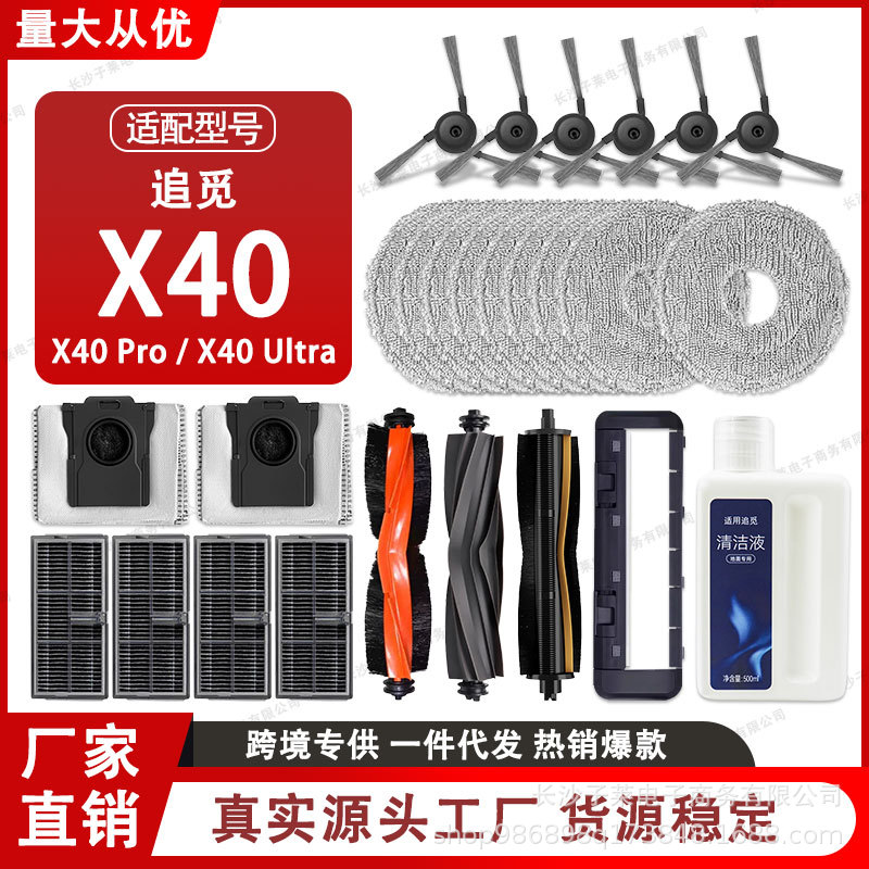 Chuimi 掃除ロボット X40 Pro アクセサリー、エッジブラシ、フィルターエレメント、モップ雑巾、ダストバッグ、洗浄液、消耗品を装備