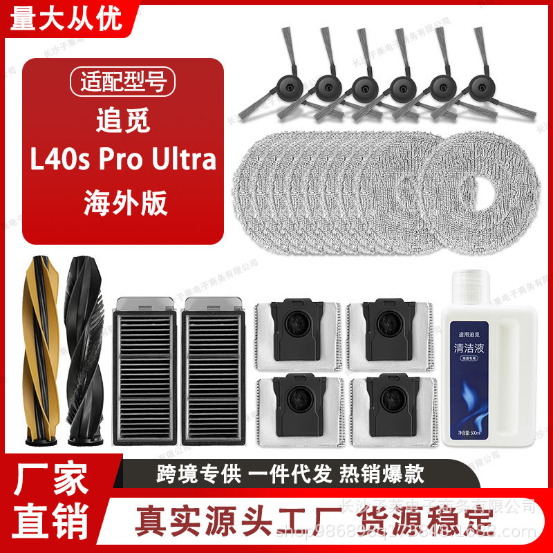 配追觅扫地机器人L40s Pro Ultra配件滚边刷滤芯拖抹布集尘袋耗材