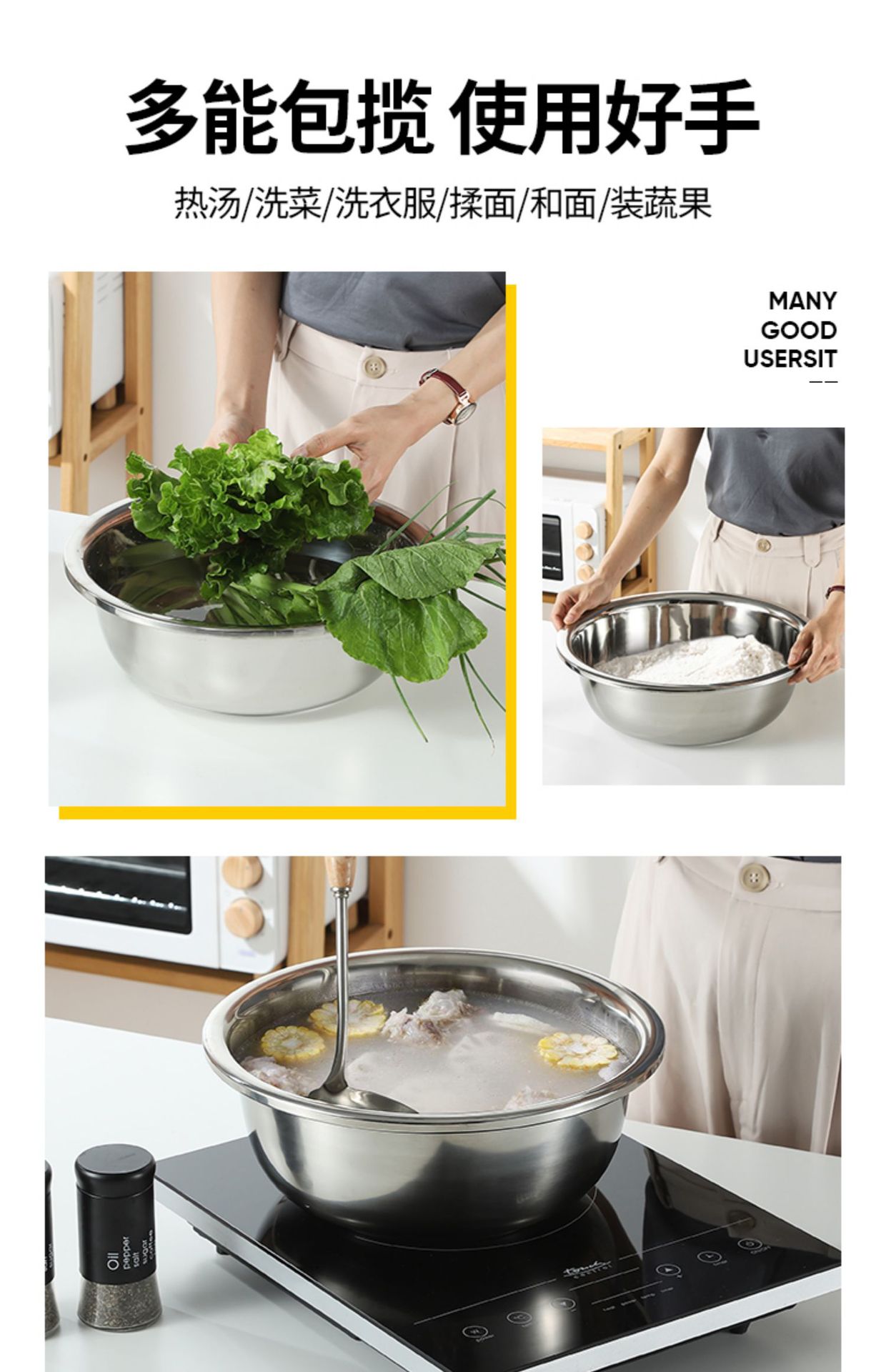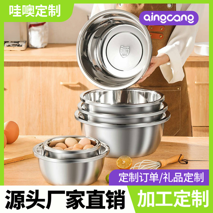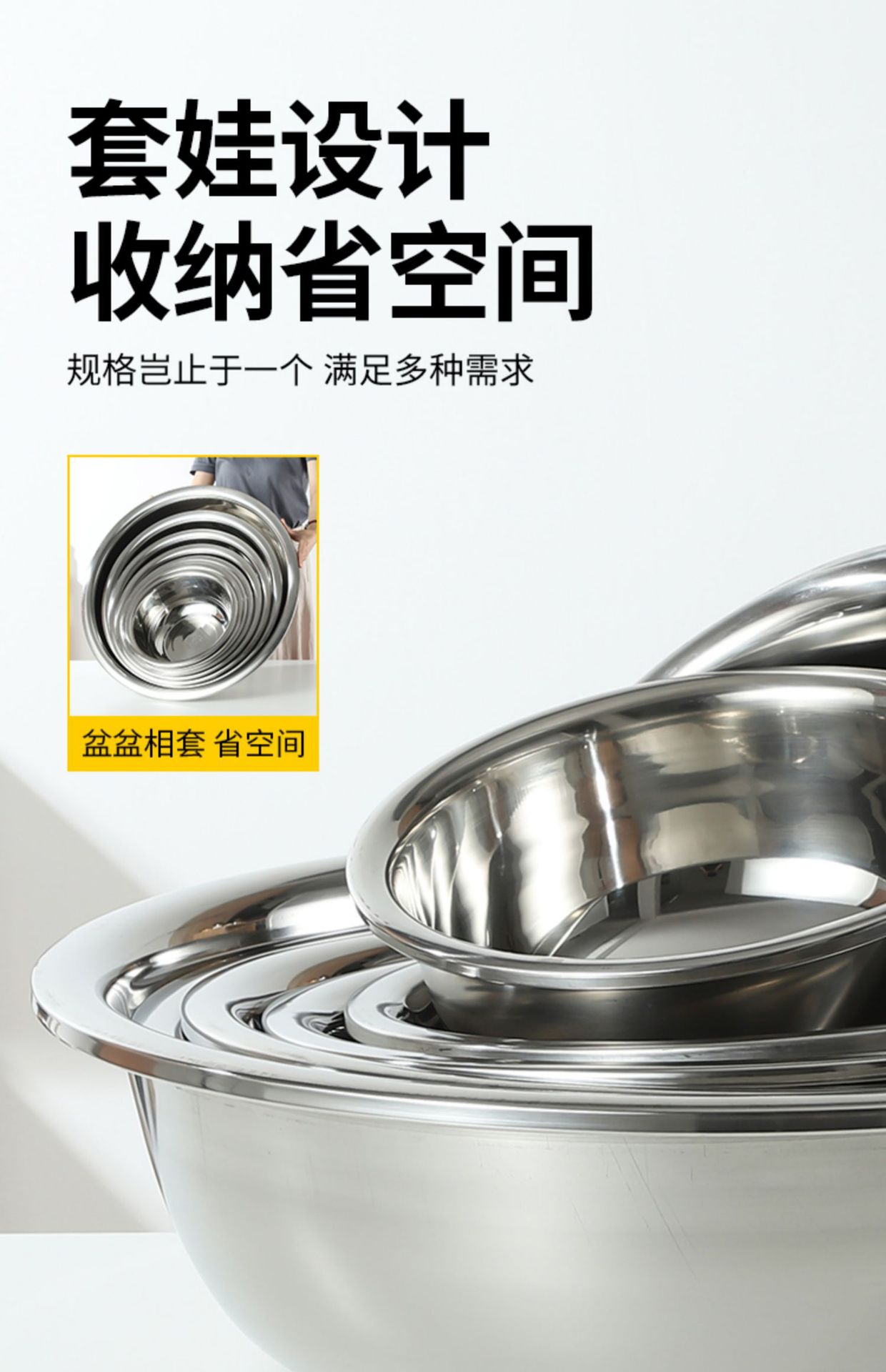 哇噢定制304不锈钢盆食品级料理盆打蛋盆洗菜盆多用盆和面盆沥水