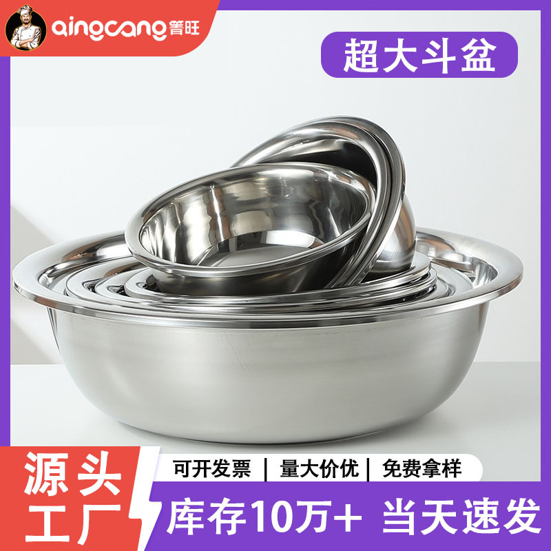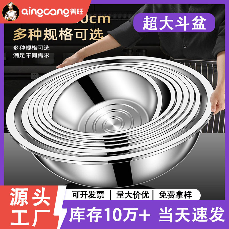 【严选】食品级304斗盆圆型100大盆洗菜盆商用反边80斗盆不锈钢盆