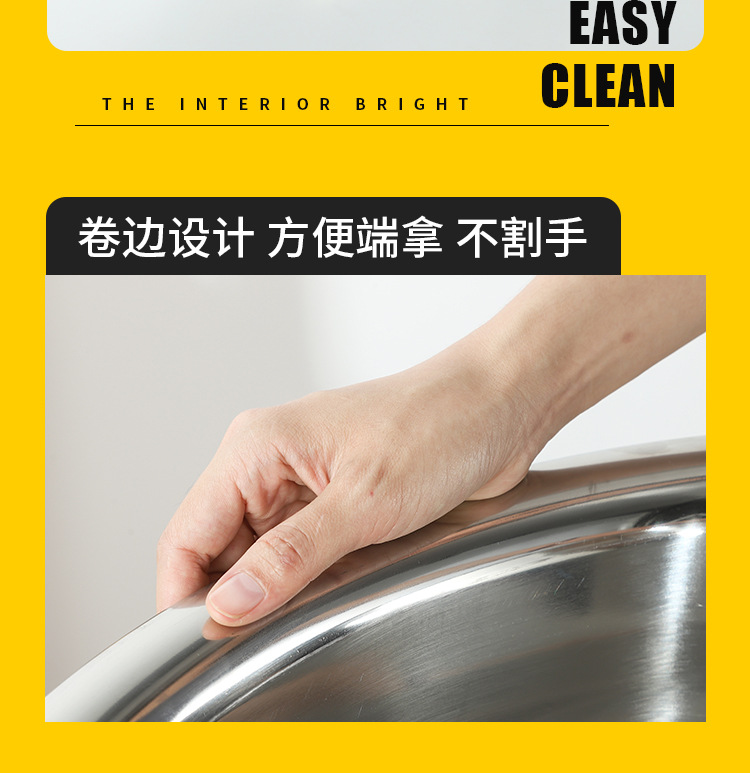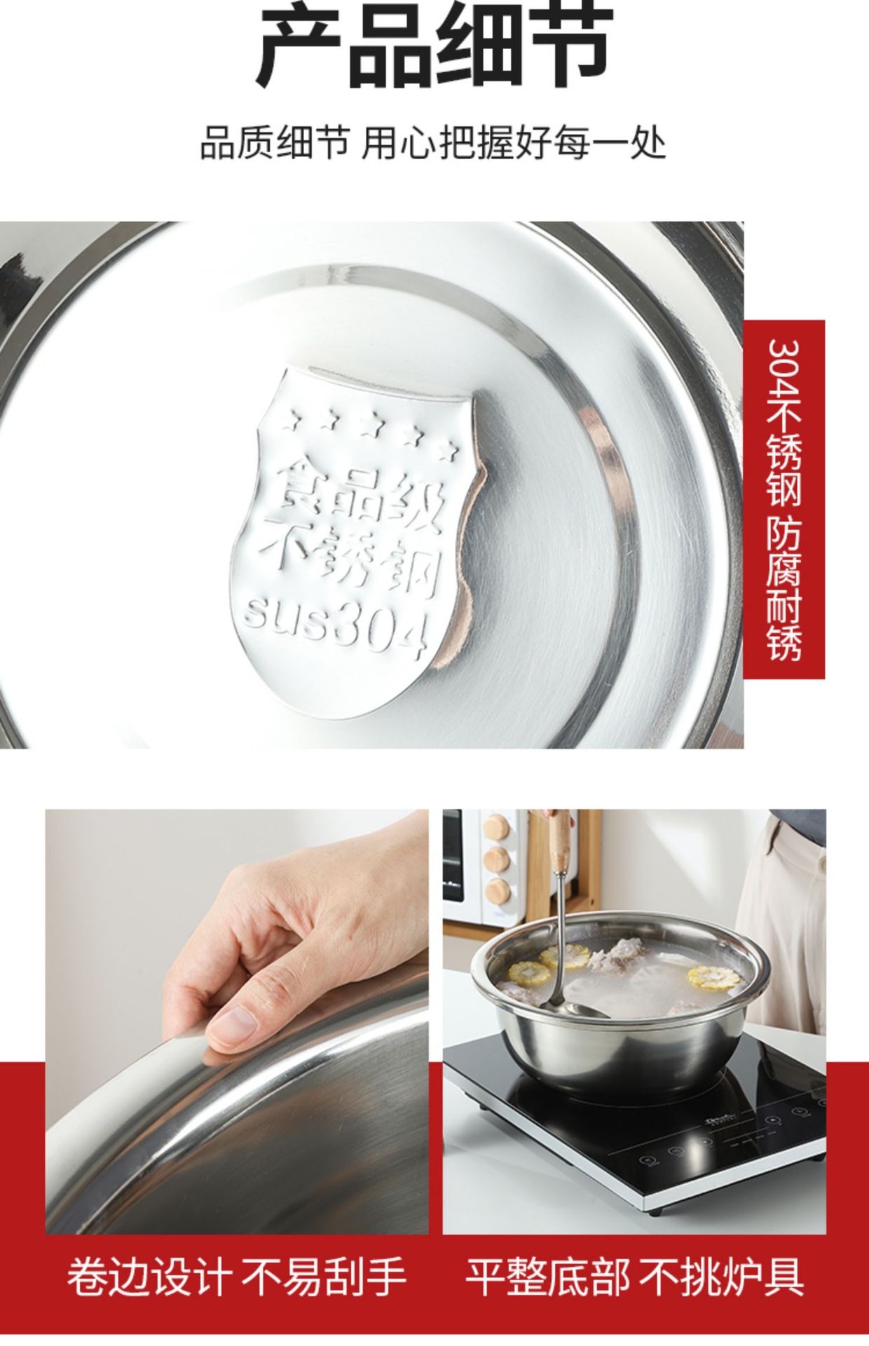 哇噢定制食品级304洗菜盆大尺寸盆不锈钢盆商用反边斗盆家用圆盆