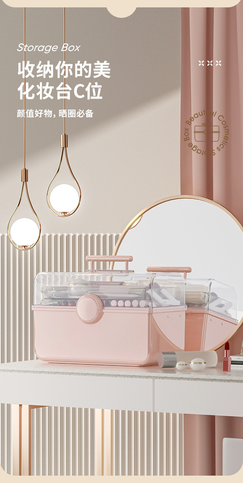 大容量化粧品収納ケースネット赤プラスチックほこり防止透明デスクトップ携帯式薬品収納ボックス