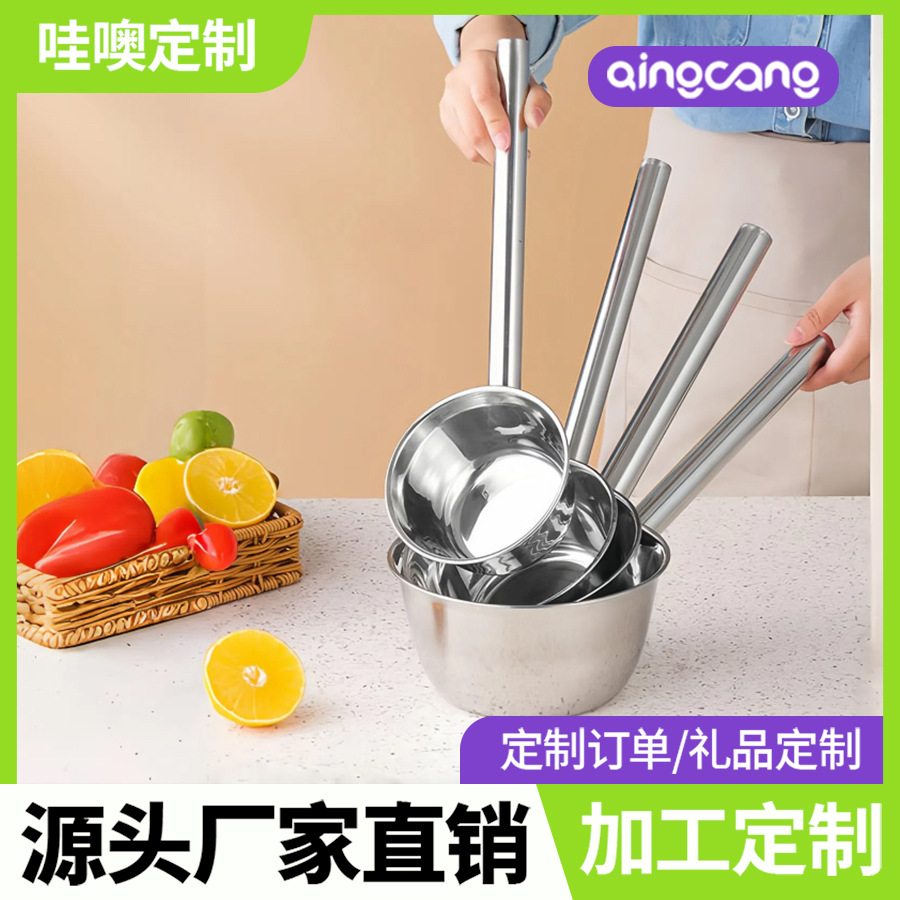Wow カスタマイズされた 304 ステンレス鋼ウォータースプーン食堂極厚非磁性ウォータースプーン大型スープスプーン延長ハンドルお粥スプーンウォータースプーン
