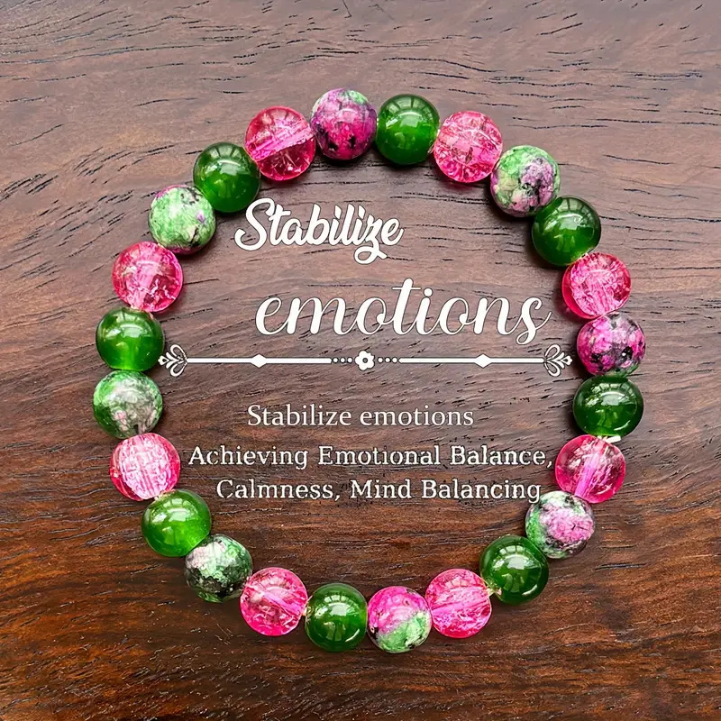 temu希音TK跨境爆款手链红绿宝东陵石手串,手工制作弹性手链