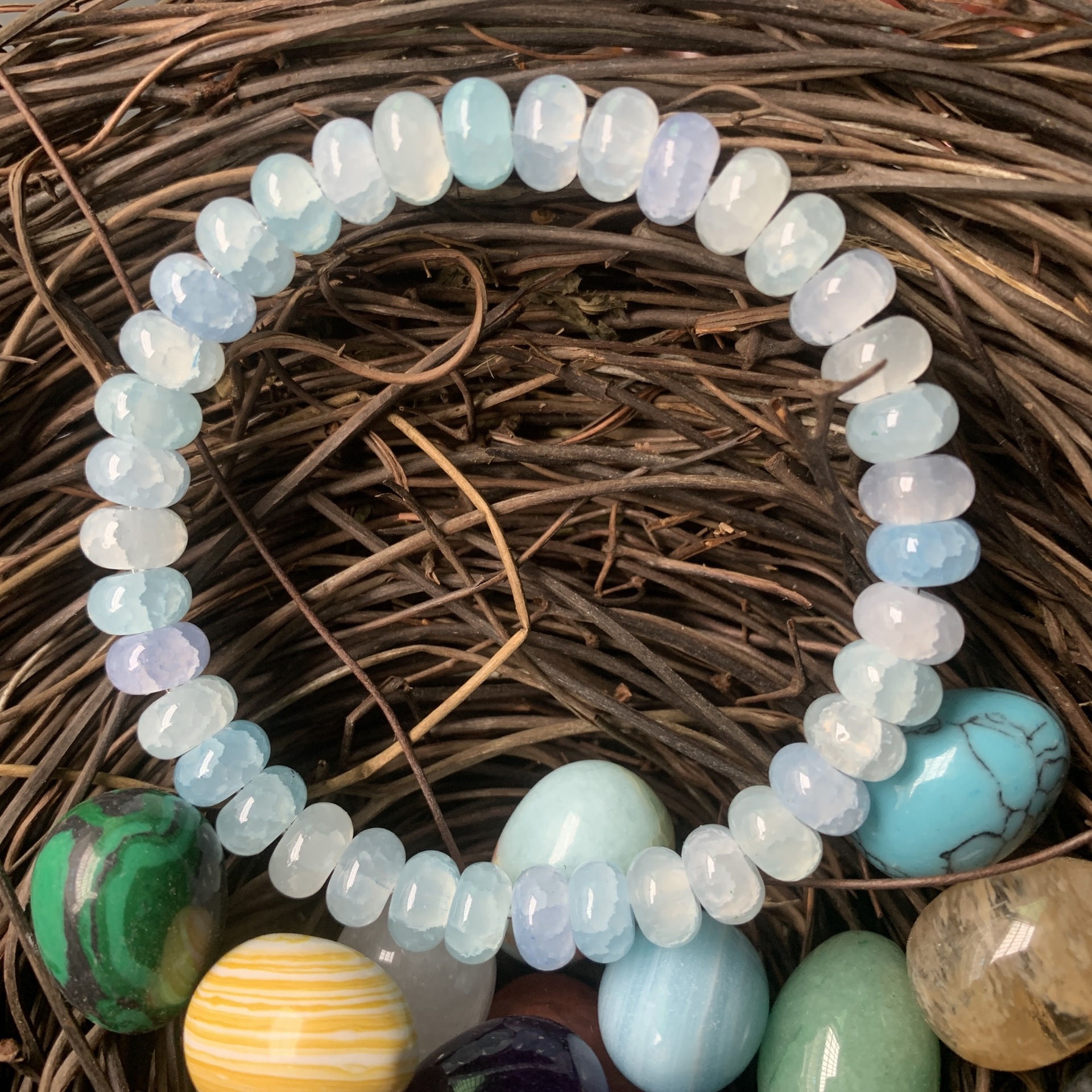 temu希音TK串珠手链由海蓝宝青金石黄玛瑙绿玛瑙算盘珠手工制作弹